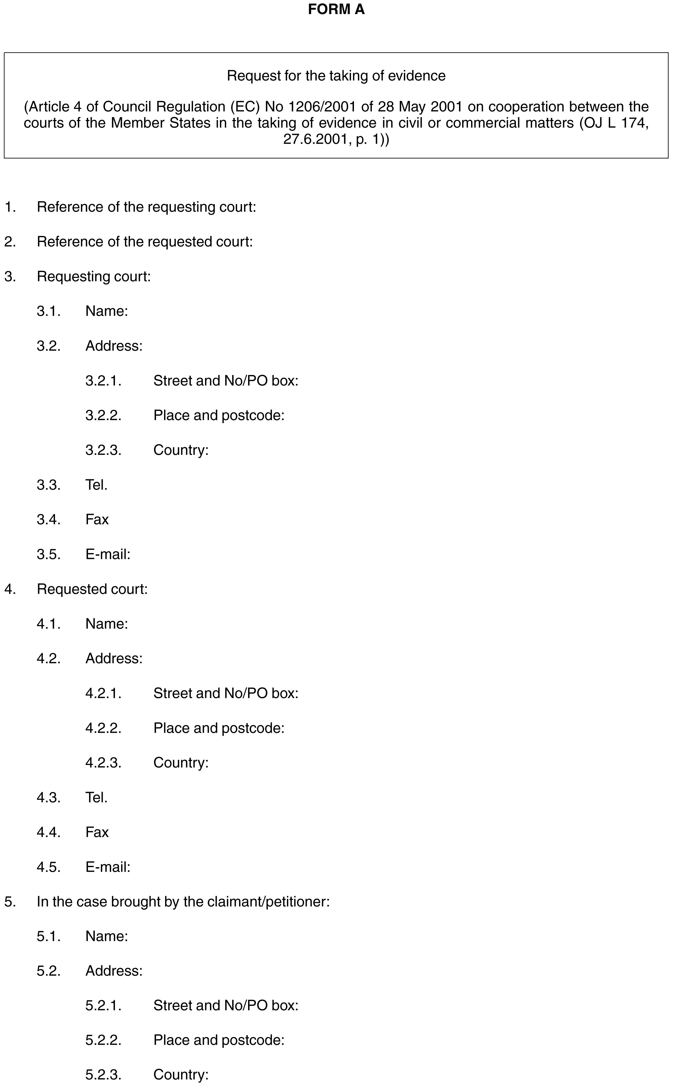 1. The request shall be made using form A or, where appropriate, form I in the Annex. It shall contain the following details: