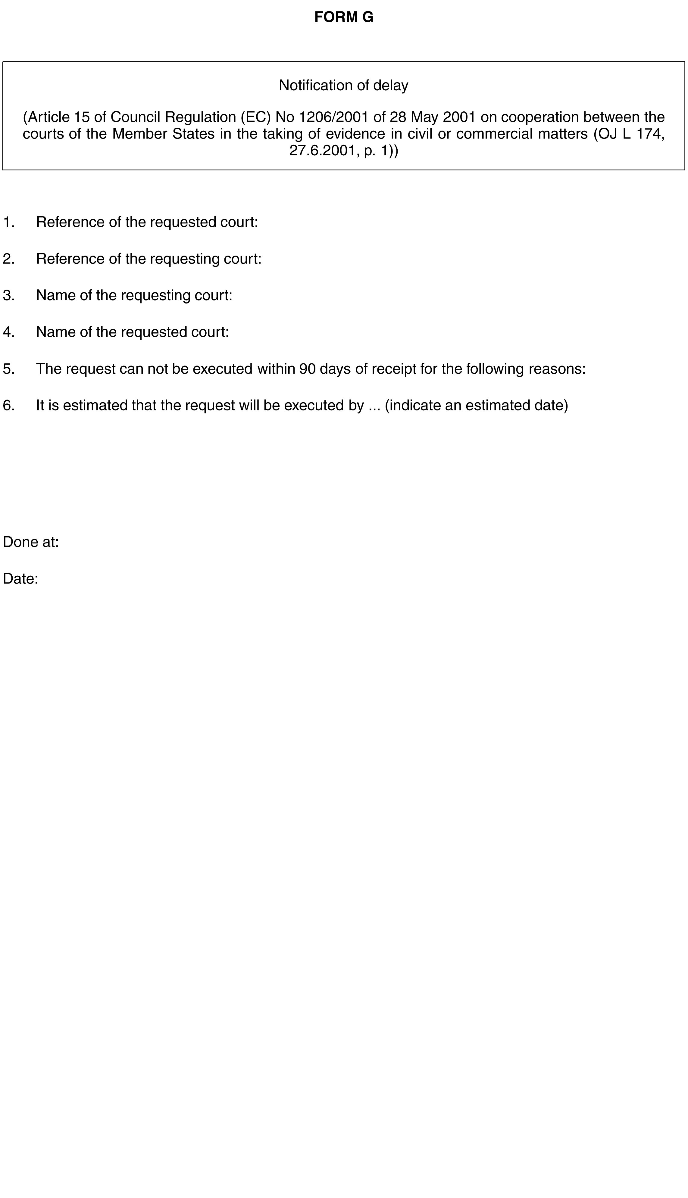 If the requested court is not in a position to execute the request within 90 days of receipt, it shall inform the requesting court thereof, using form G in the Annex. When it does so, the grounds for the delay shall be given as well as the estimated time that the requested court expects it will need to execute the request.