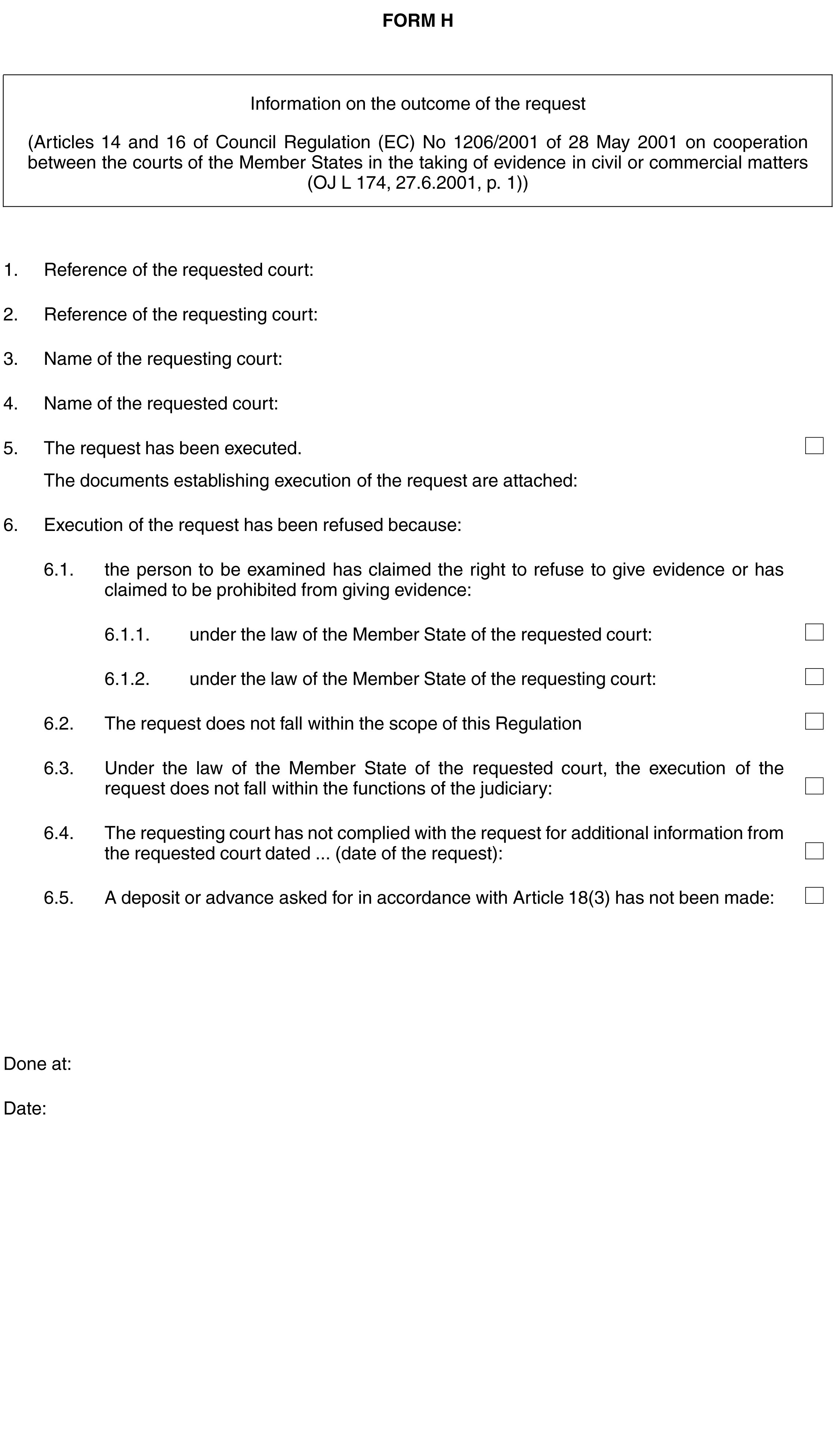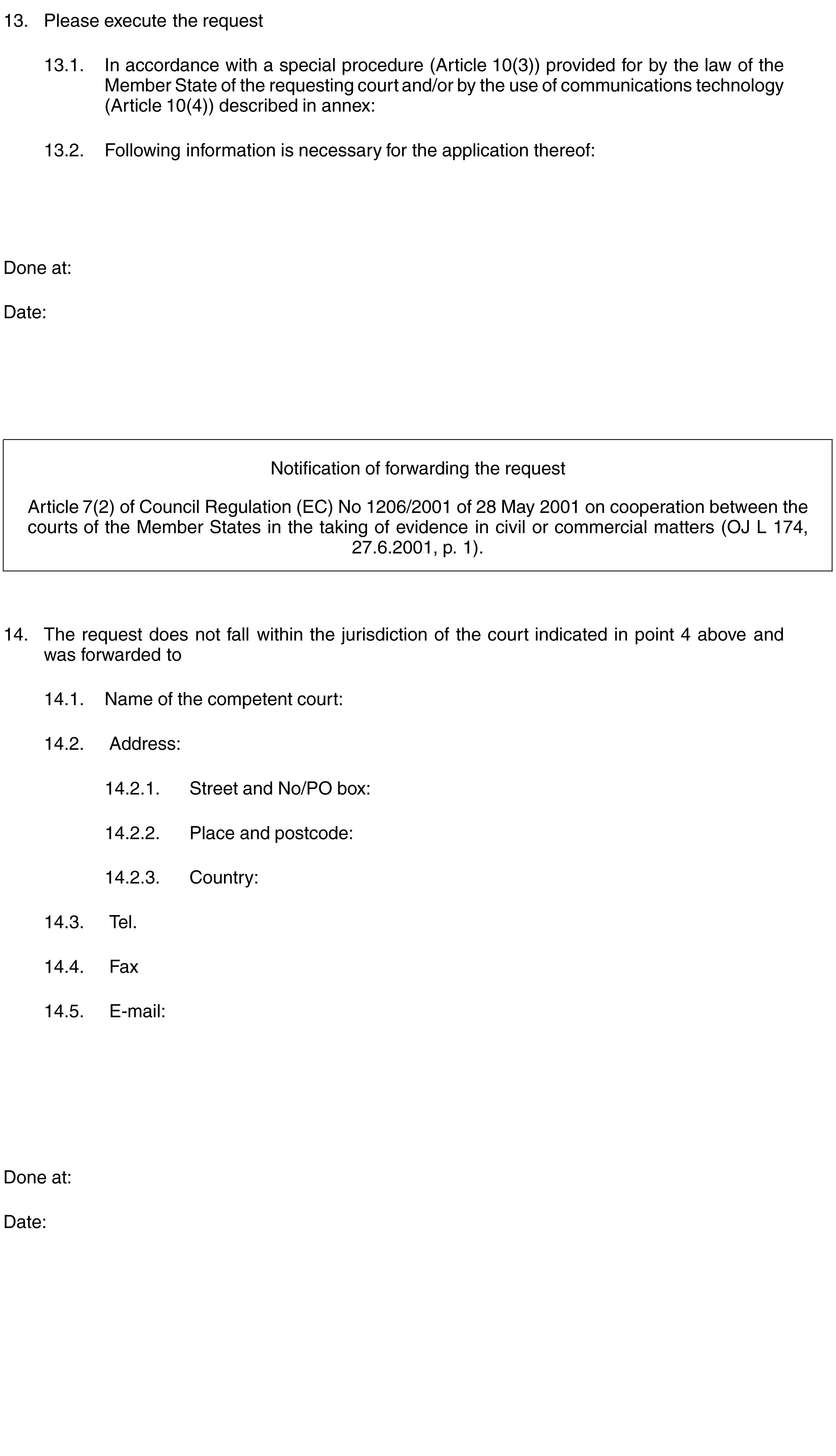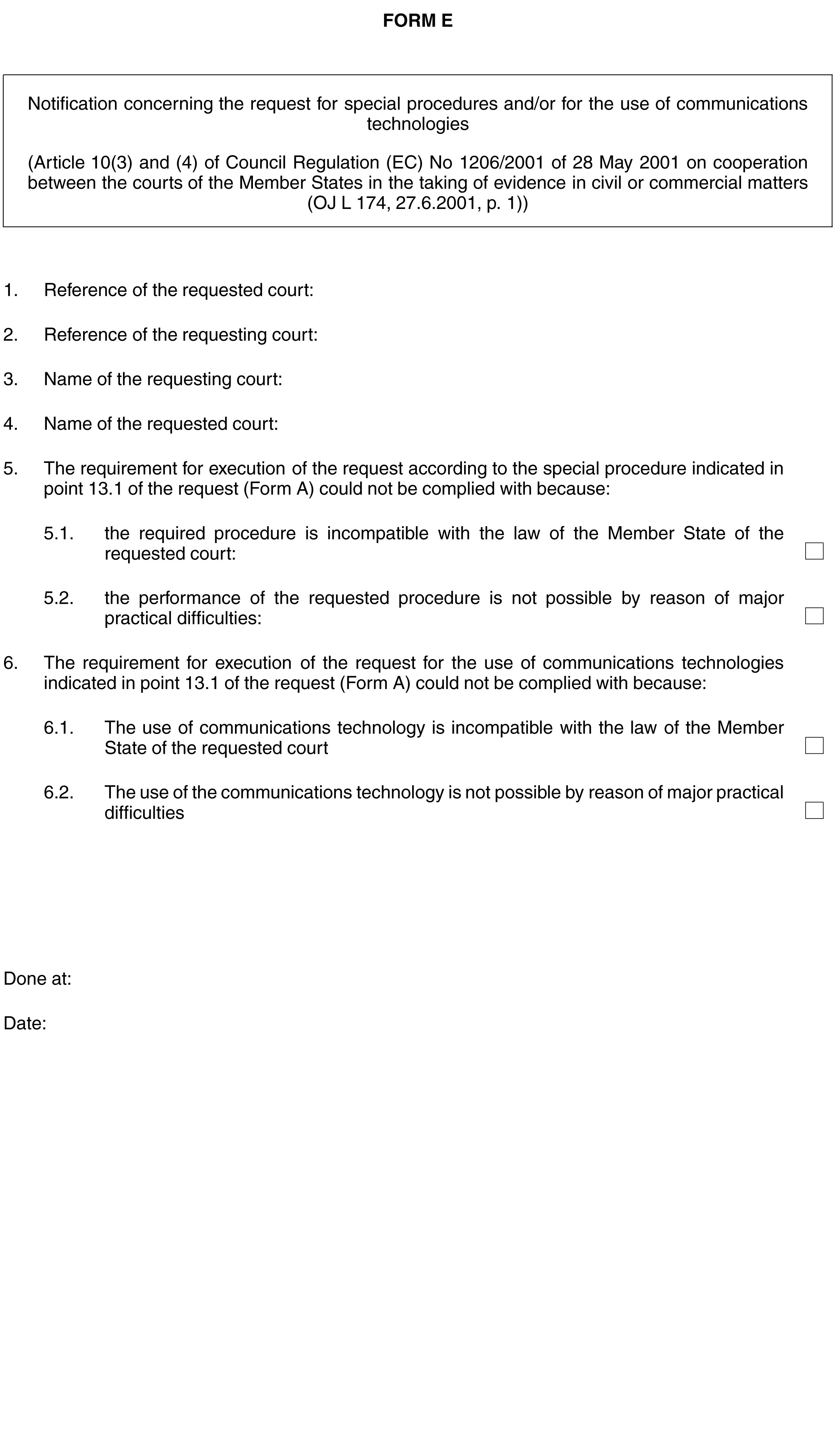 If the requested court does not comply with the requirement for one of these reasons, it shall inform the requesting court, using form E in the Annex.