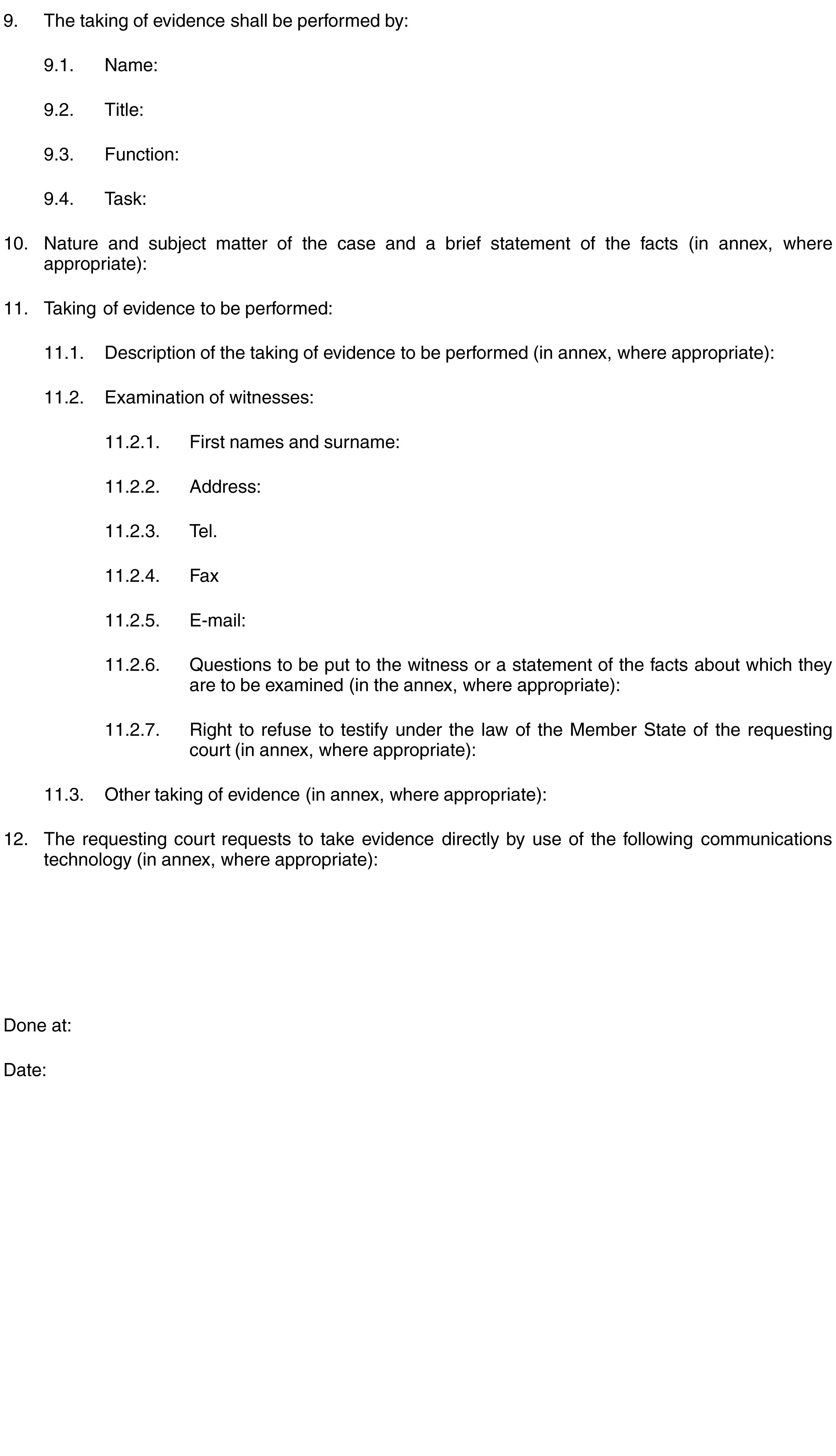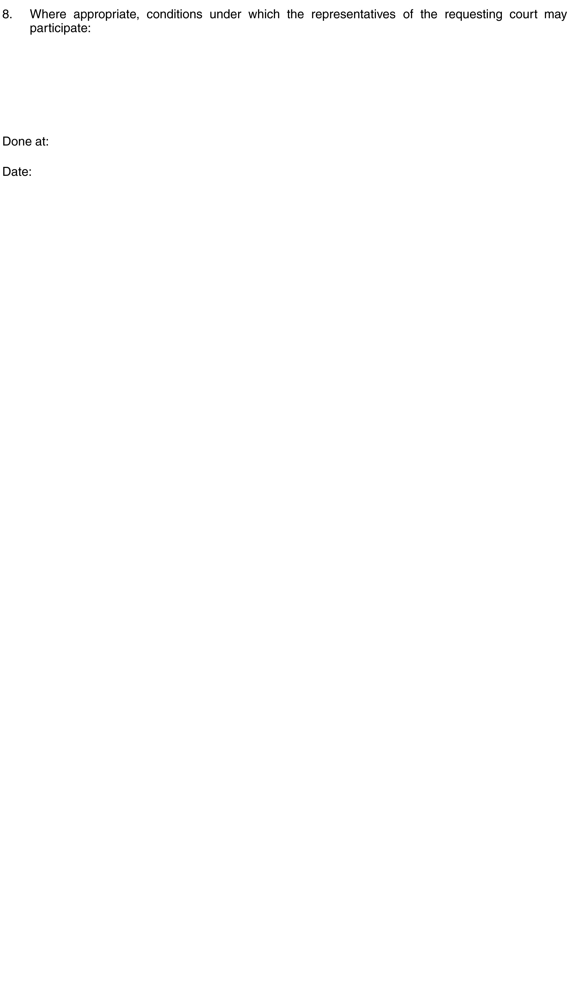 (f)where the request is for any other form of taking of evidence, the documents or other objects to be inspected;