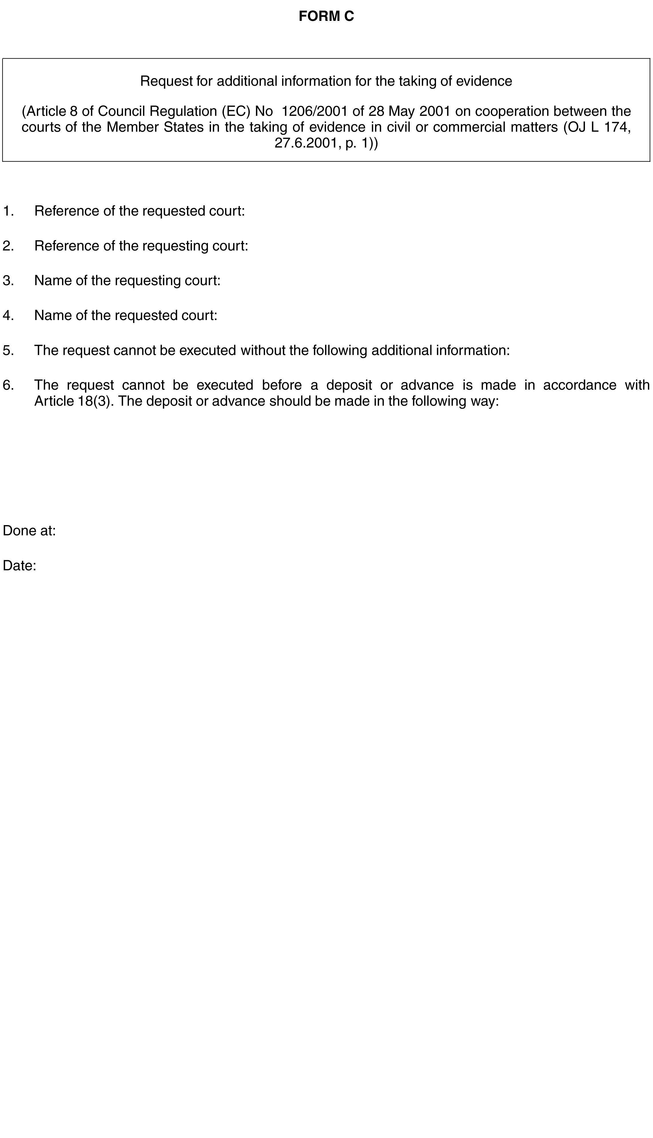 1. If a request cannot be executed because it does not contain all of the necessary information pursuant to Article 4, the requested court shall inform the requesting court thereof without delay and, at the latest, within 30 days of receipt of the request using form C in the Annex, and shall request it to send the missing information, which should be indicated as precisely as possible.