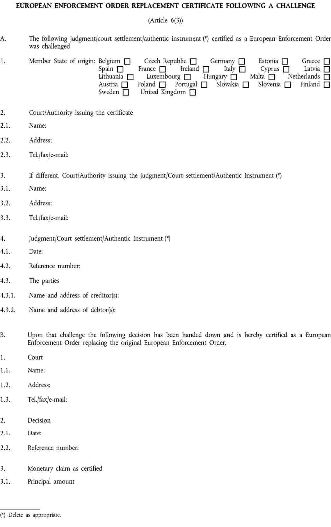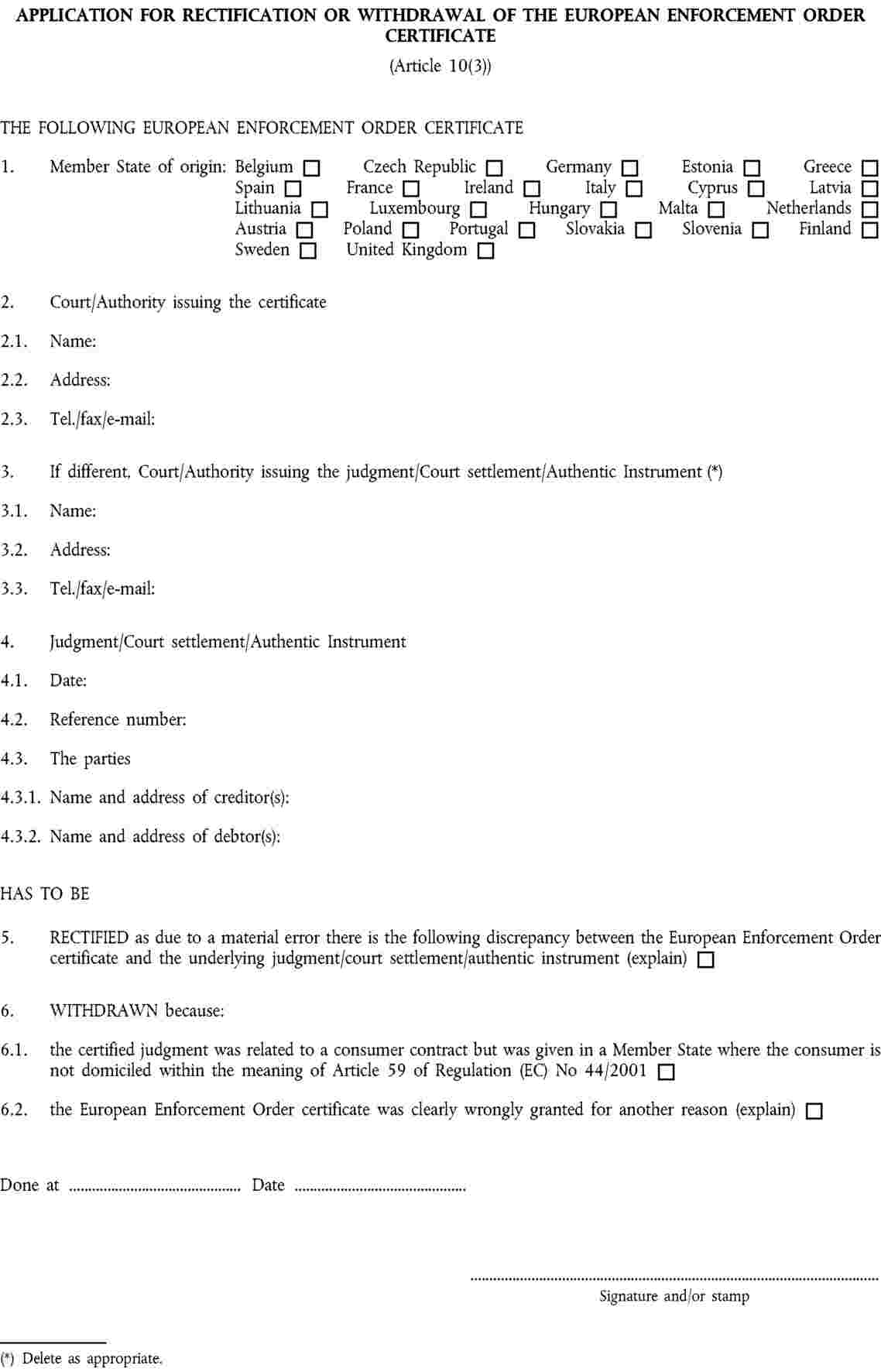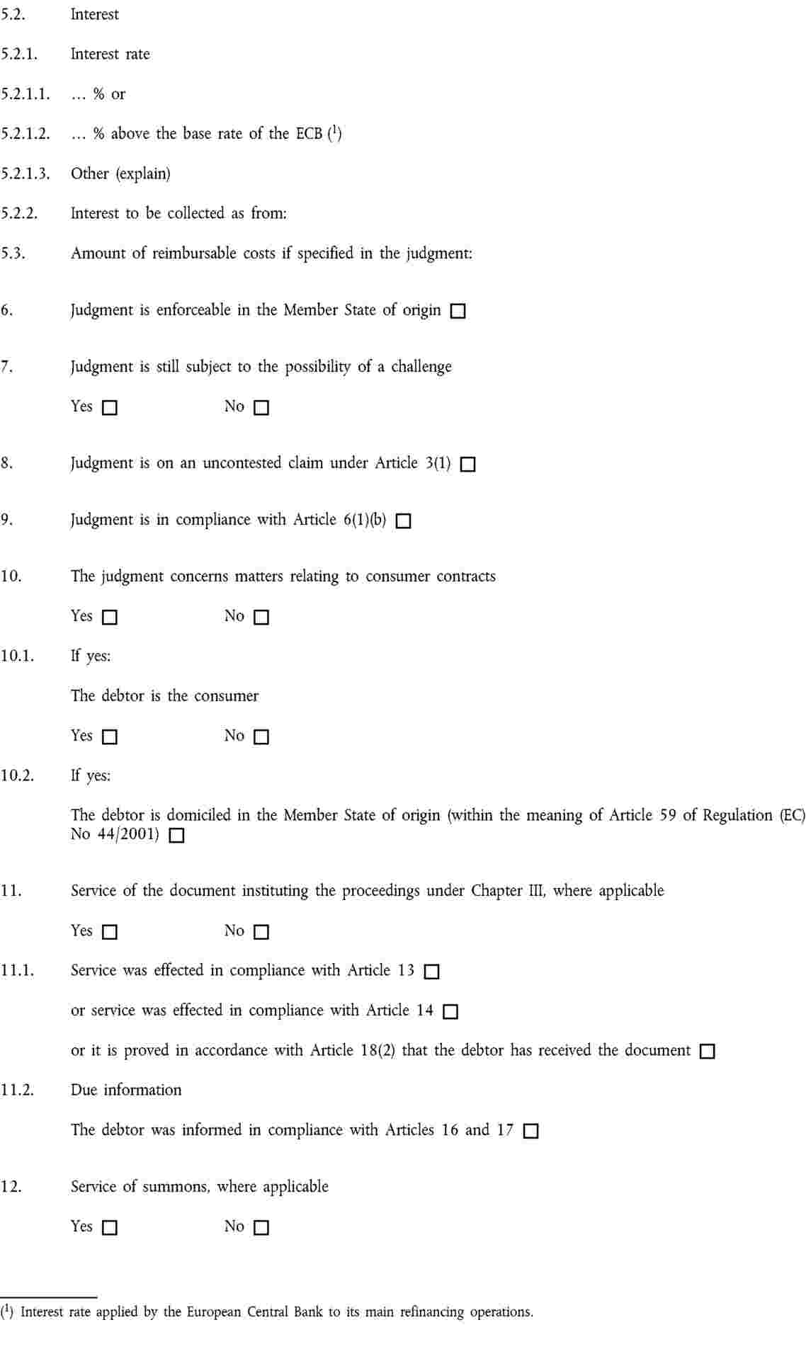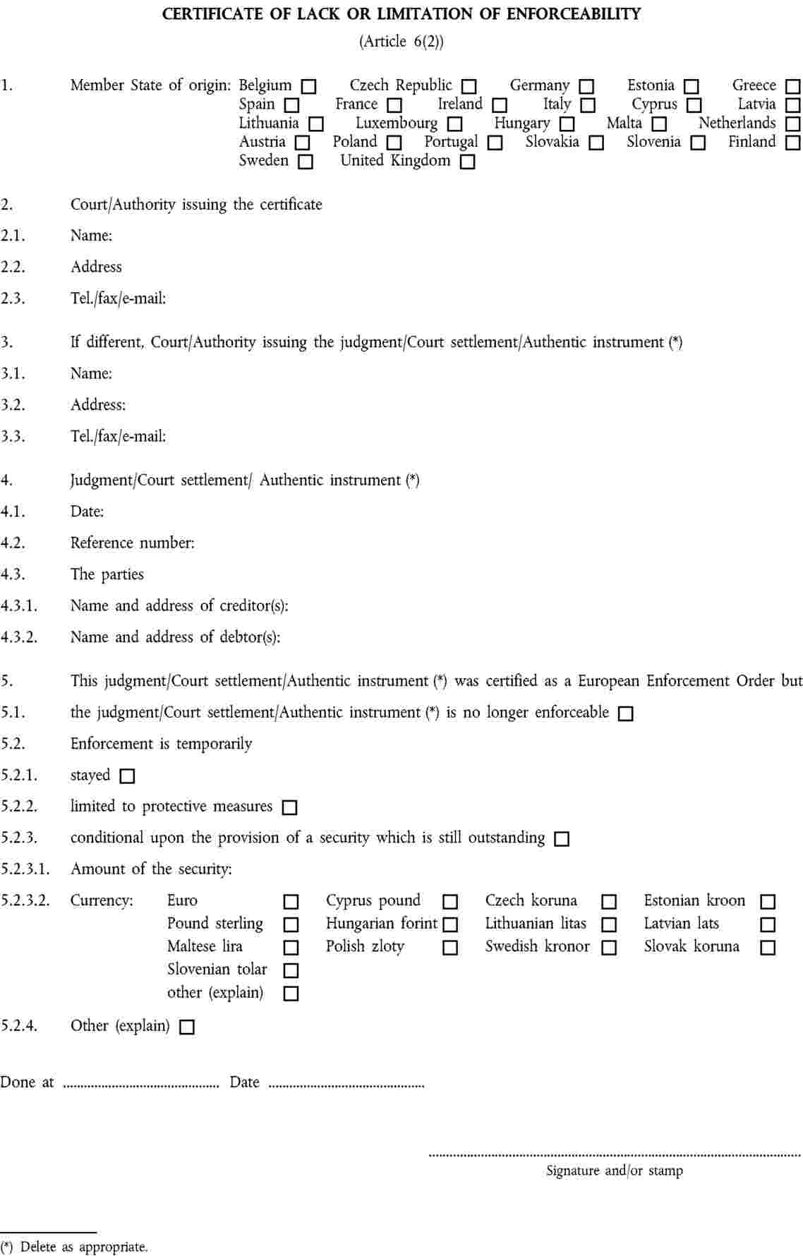 Annexes I to VI to Regulation (EC) No 805/2004 contain a series of standard forms to be used in the context of the European Enforcement Order procedure for uncontested claims. |