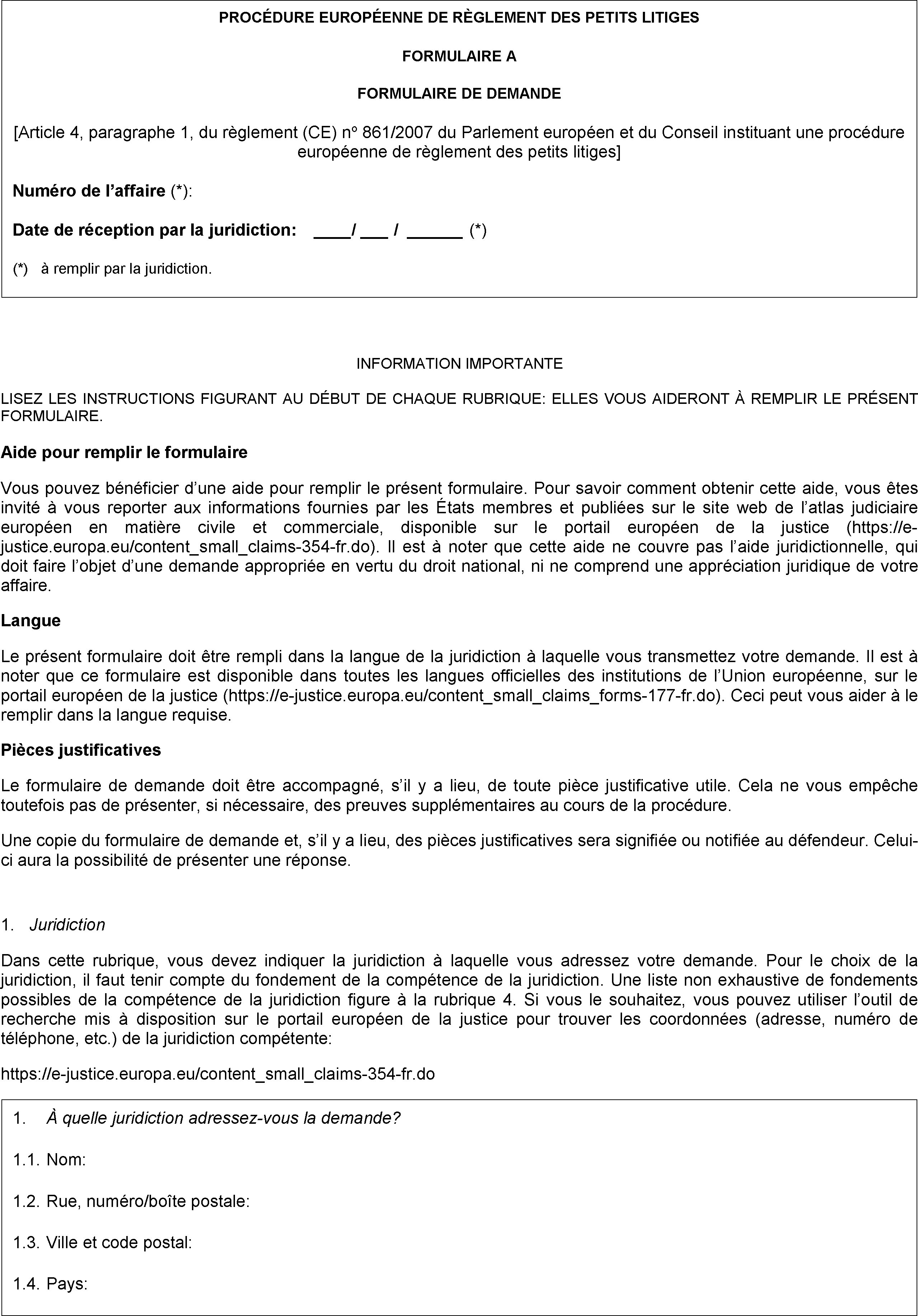 a)les juridictions compétentes pour rendre une décision dans le cadre de la procédure européenne de règlement des petits litiges;