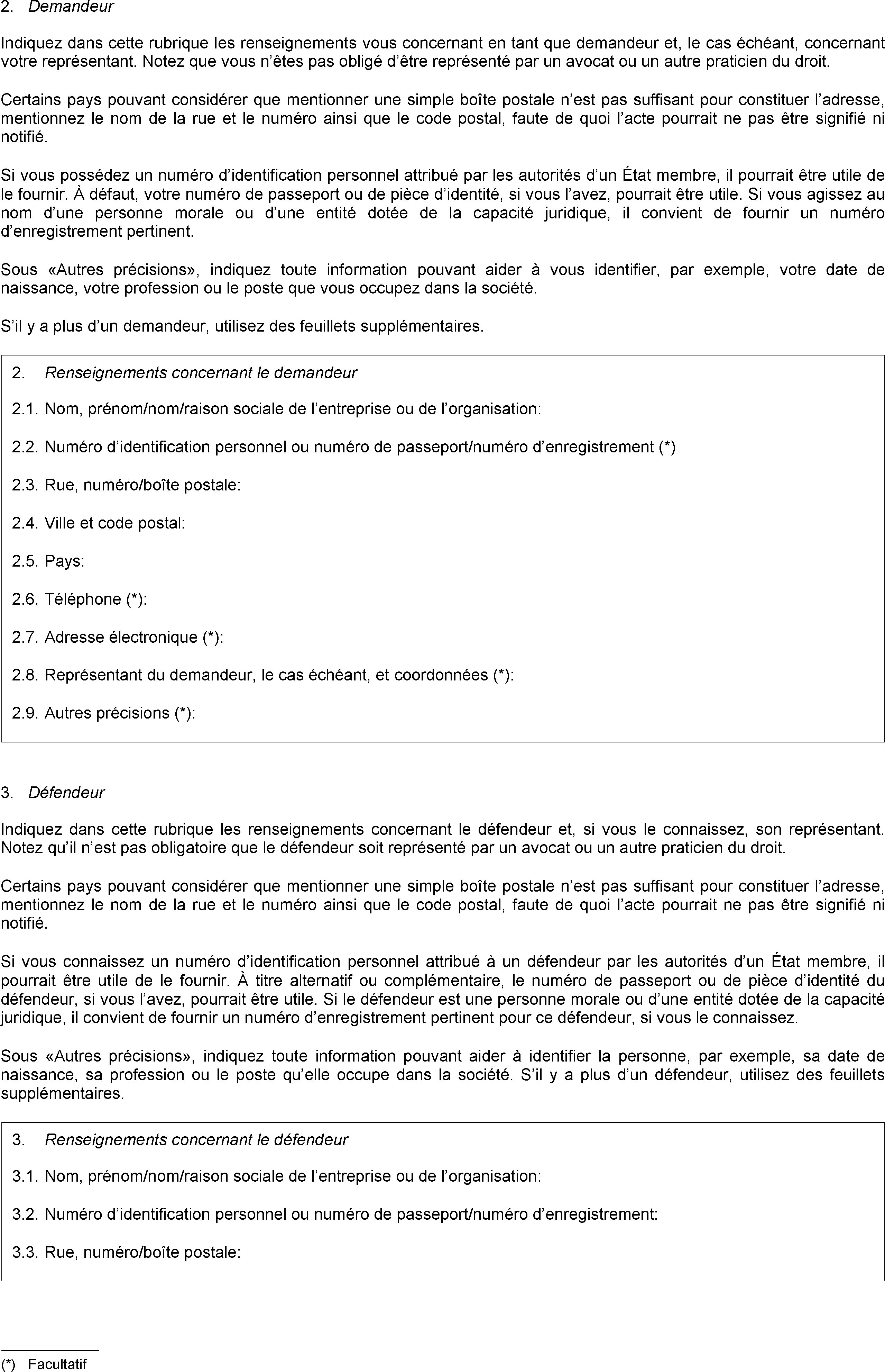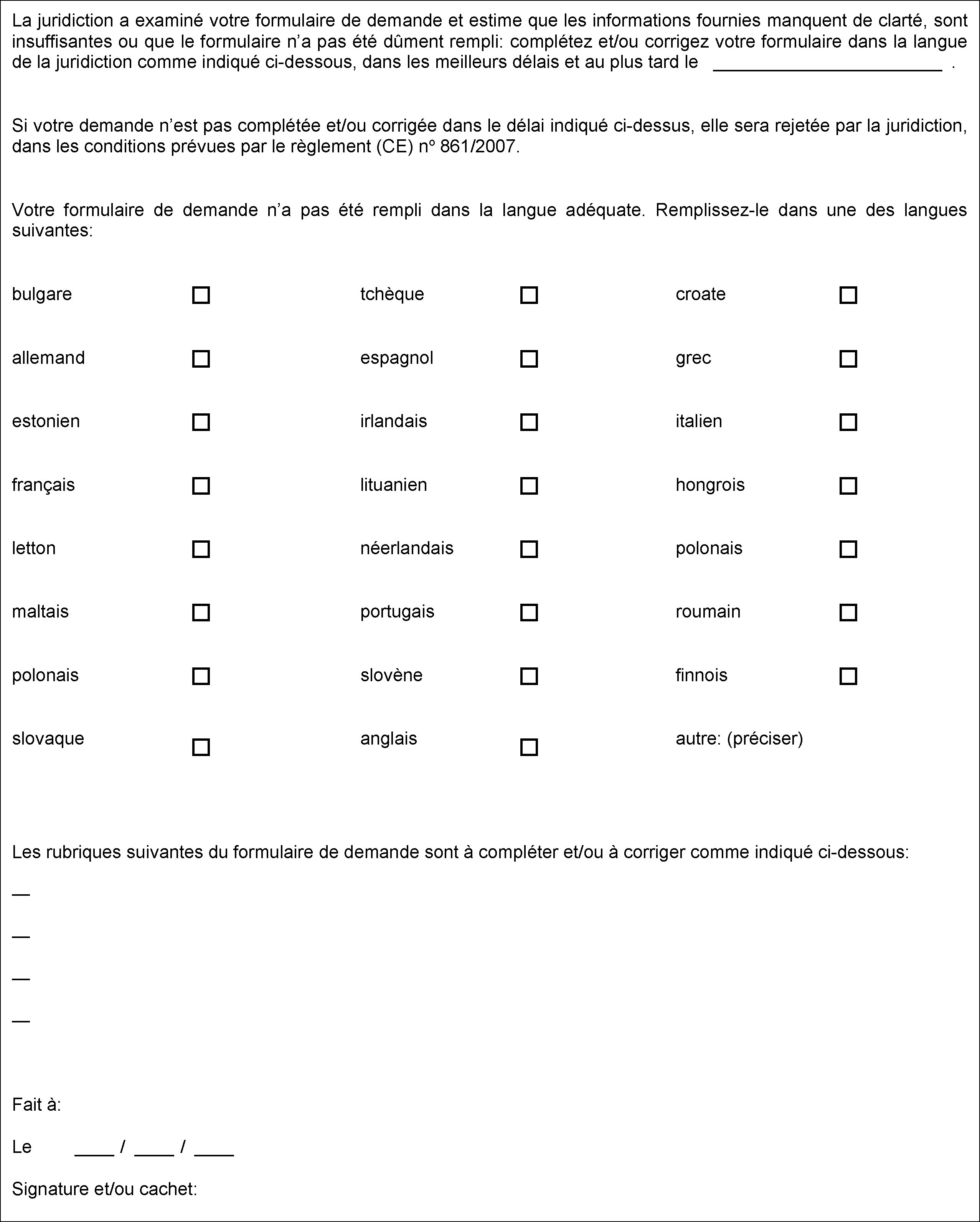 2. Après réception du formulaire de demande dûment rempli, la juridiction complète la partie I du formulaire type de réponse C figurant à l’annexe III.