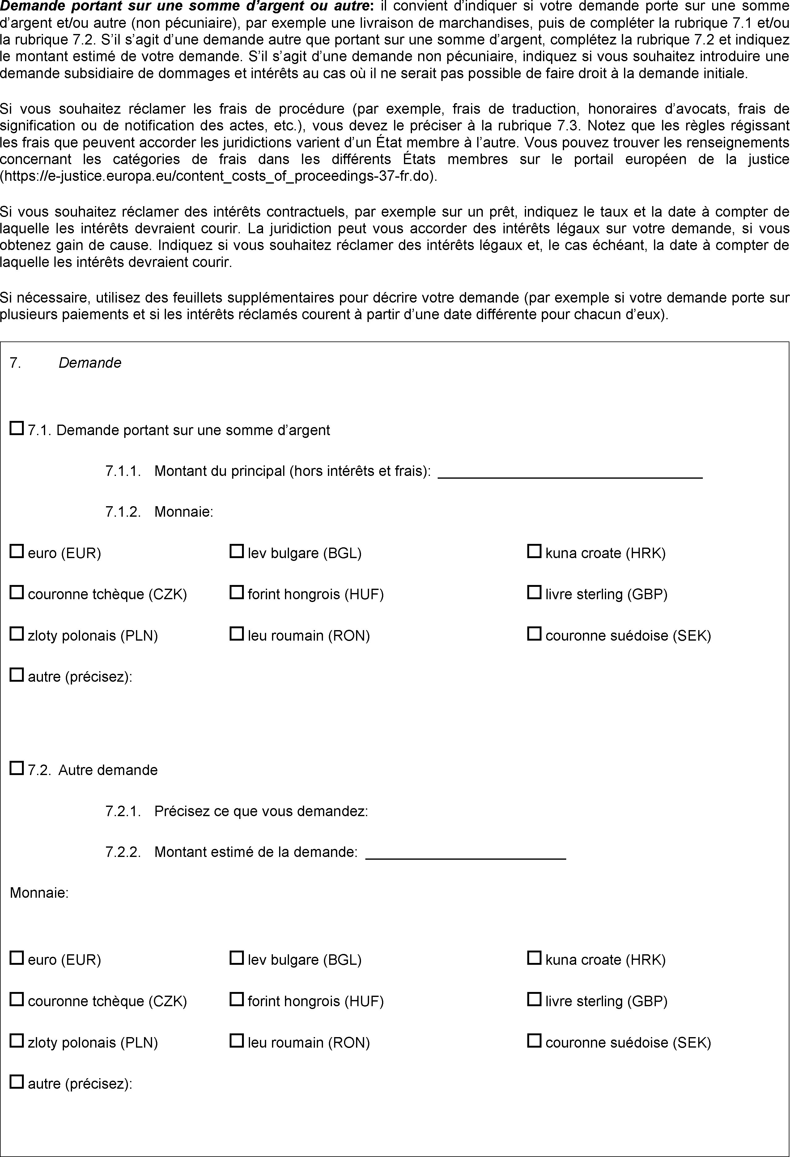 7. Si la demande reconventionnelle dépasse la limite fixée à l’article 2, paragraphe 1, la demande et la demande reconventionnelle ne relèvent pas de la procédure européenne de règlement des petits litiges mais sont traitées conformément au droit procédural applicable dans l’État membre où la procédure se déroule.