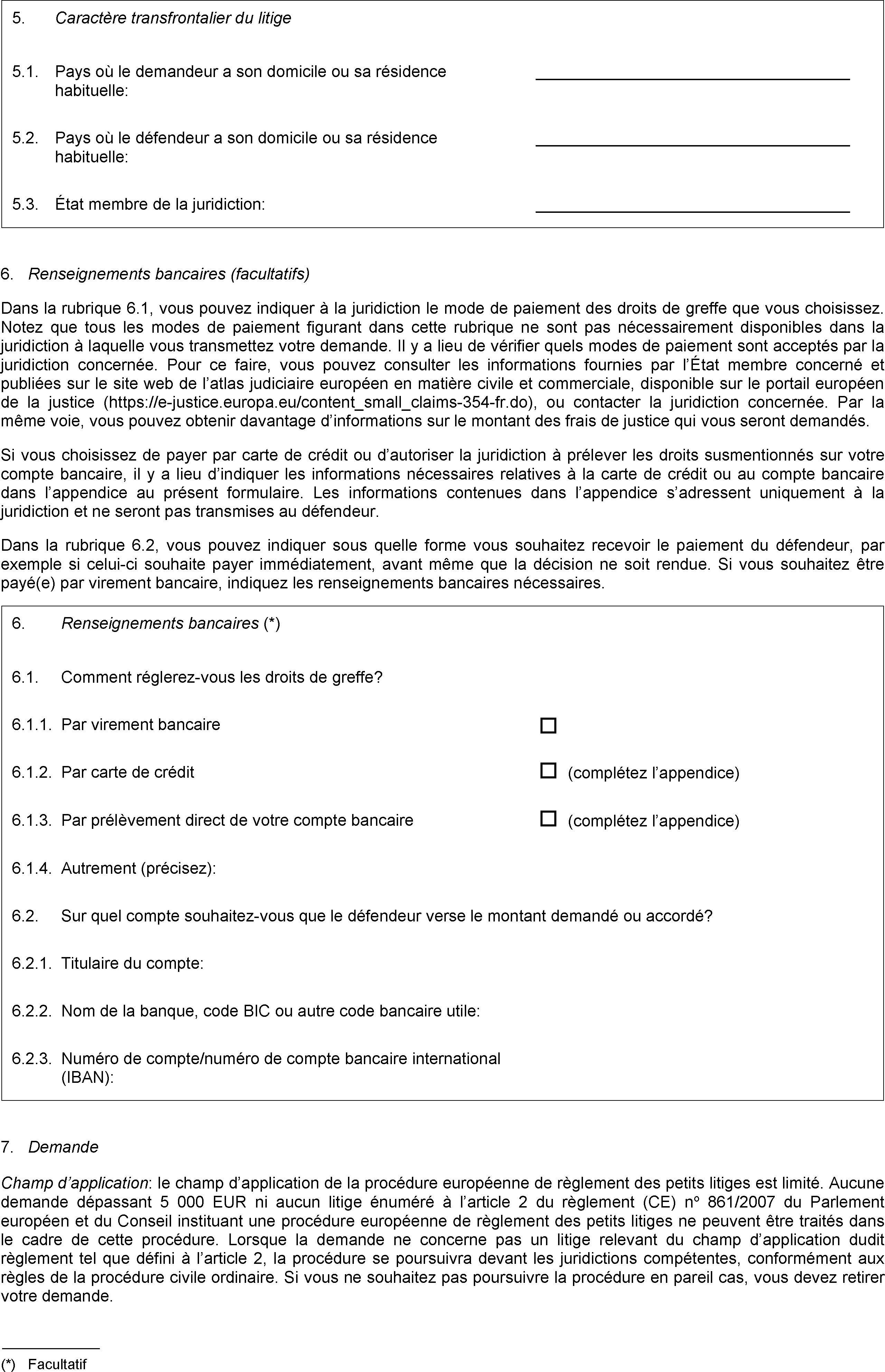 f)les frais de justice pour la procédure européenne de règlement des petits litiges ou leur mode de calcul, et les modes de paiement acceptés pour le paiement des frais de justice conformément à l'article 15 bis;
