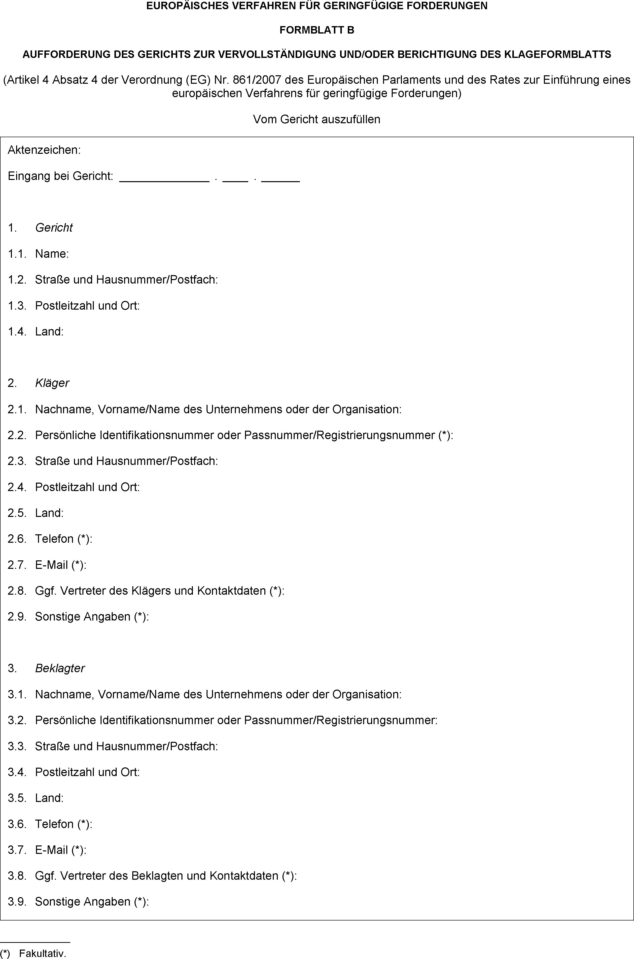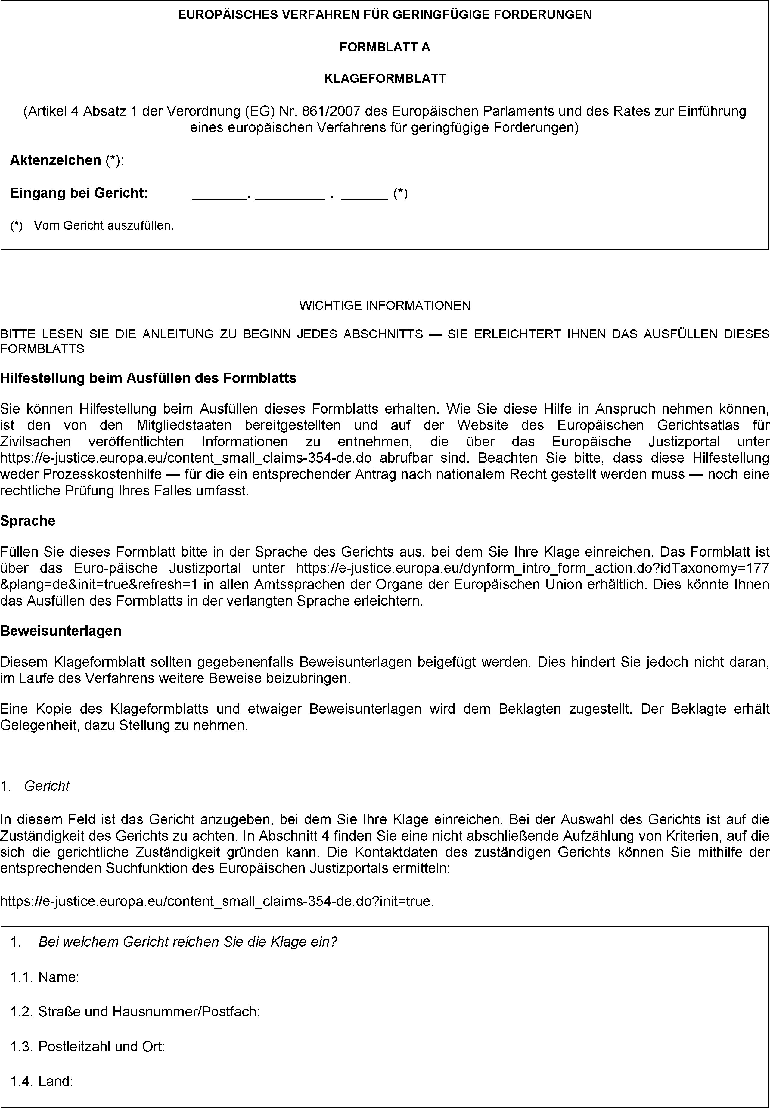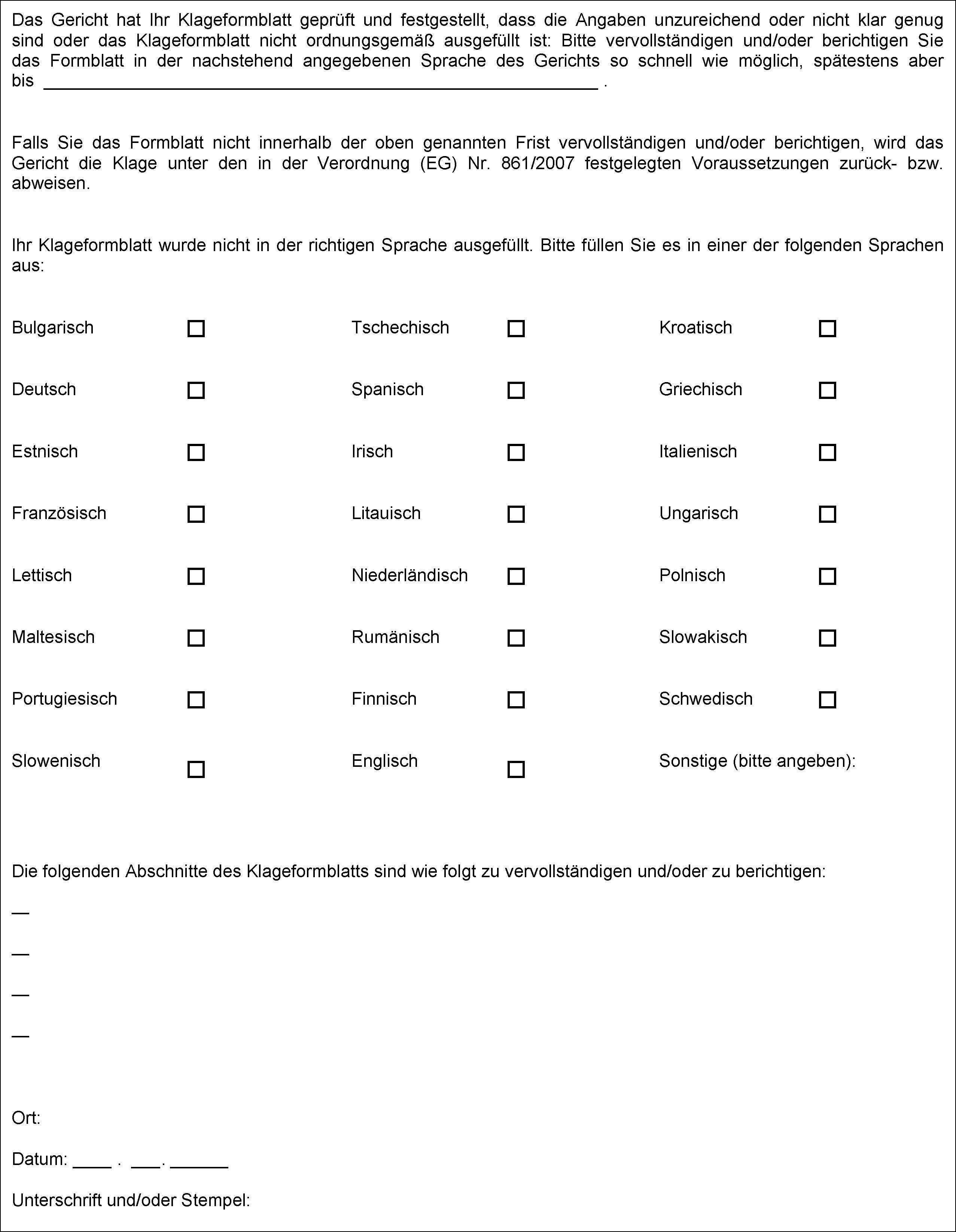 (2) Nach Eingang des ordnungsgemäß ausgefüllten Klageformblatts füllt das Gericht Teil I des in Anhang III vorgegebenen Standardantwortformblatts C aus.