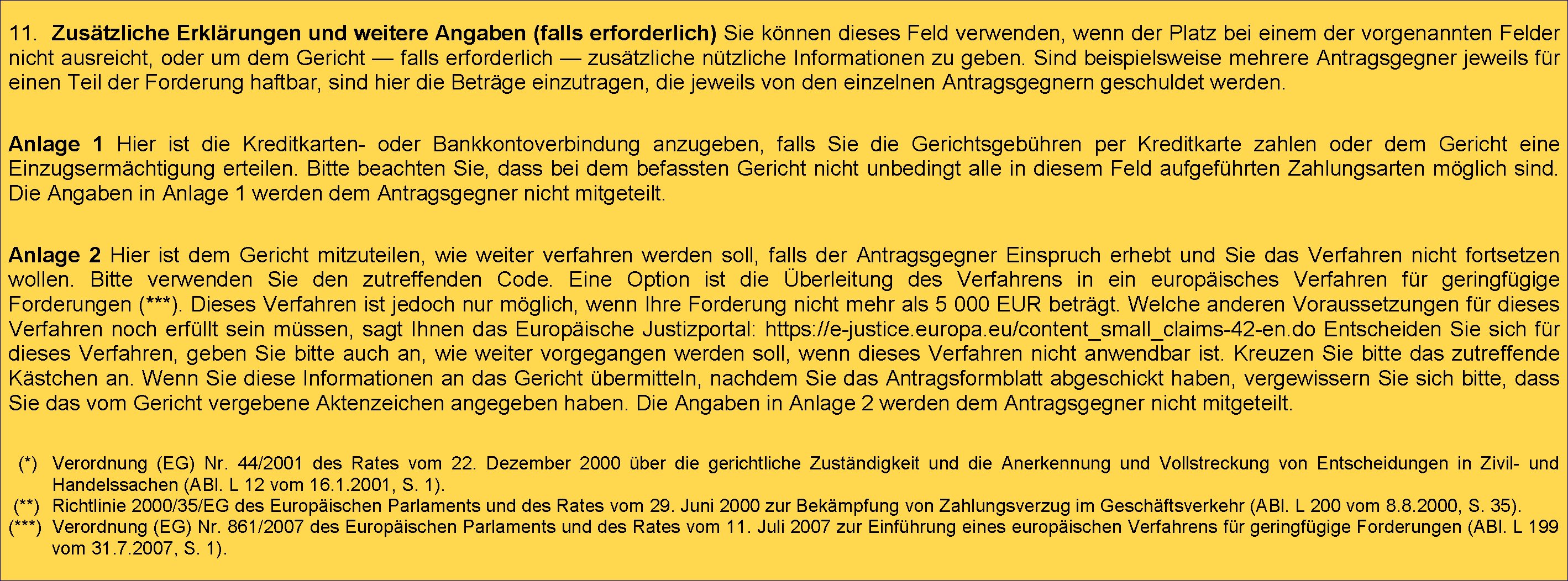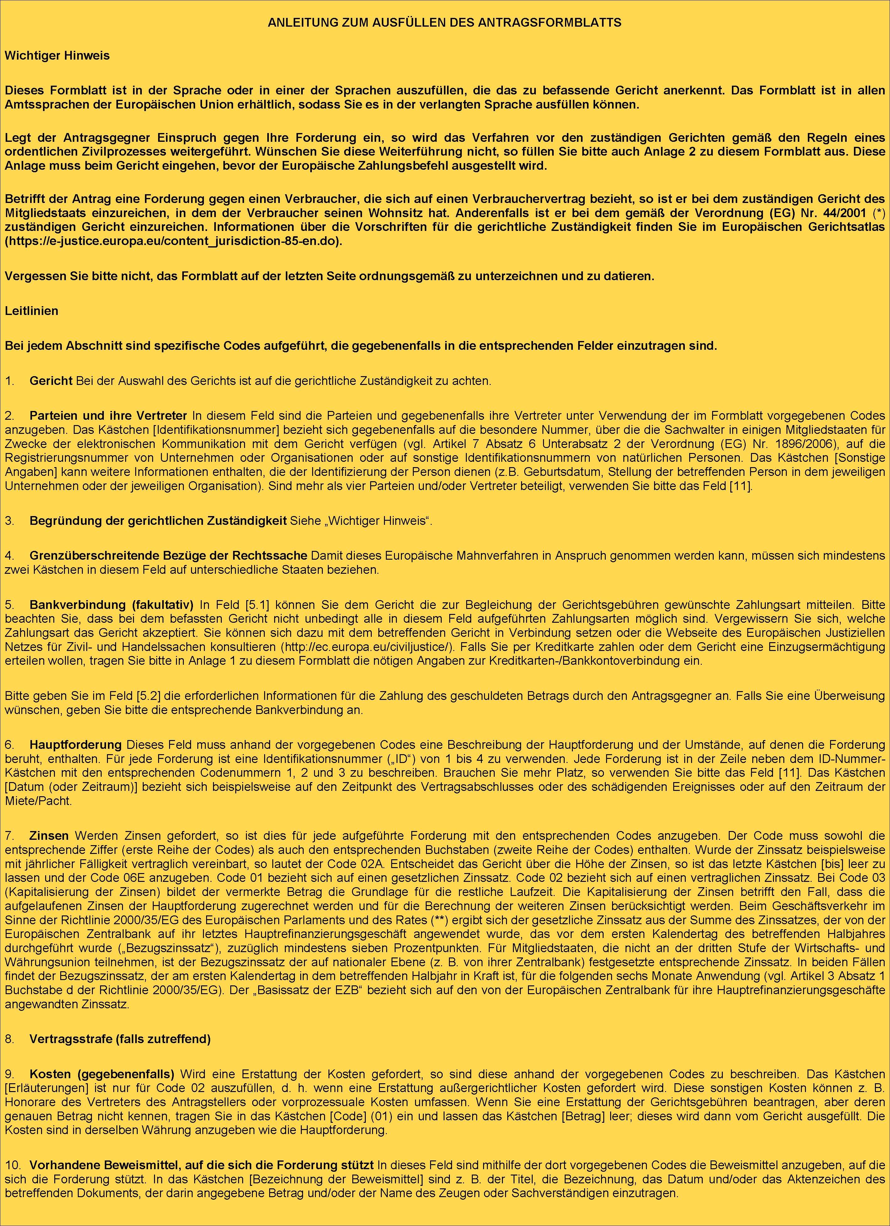 (3) In dem Europäischen Zahlungsbefehl wird der Antragsgegner davon in Kenntnis gesetzt, dass er