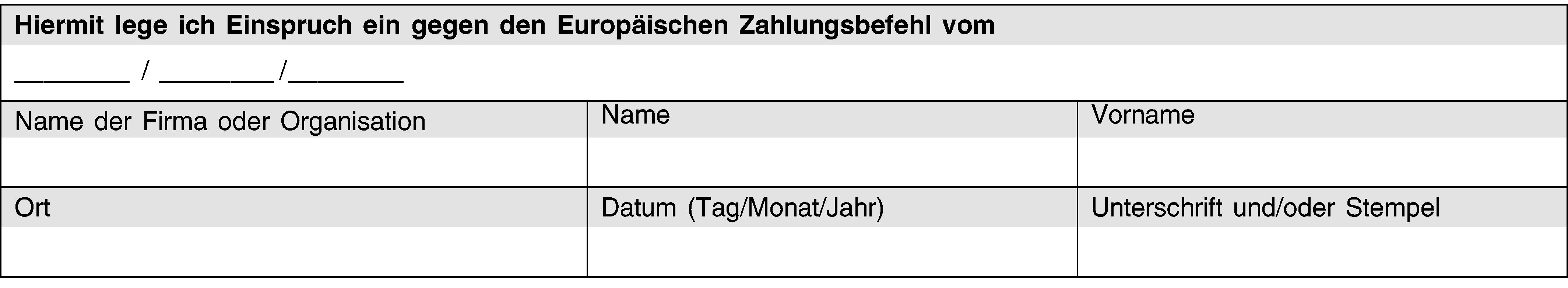 Einspruch gegen den Europäischen Zahlungsbefehl