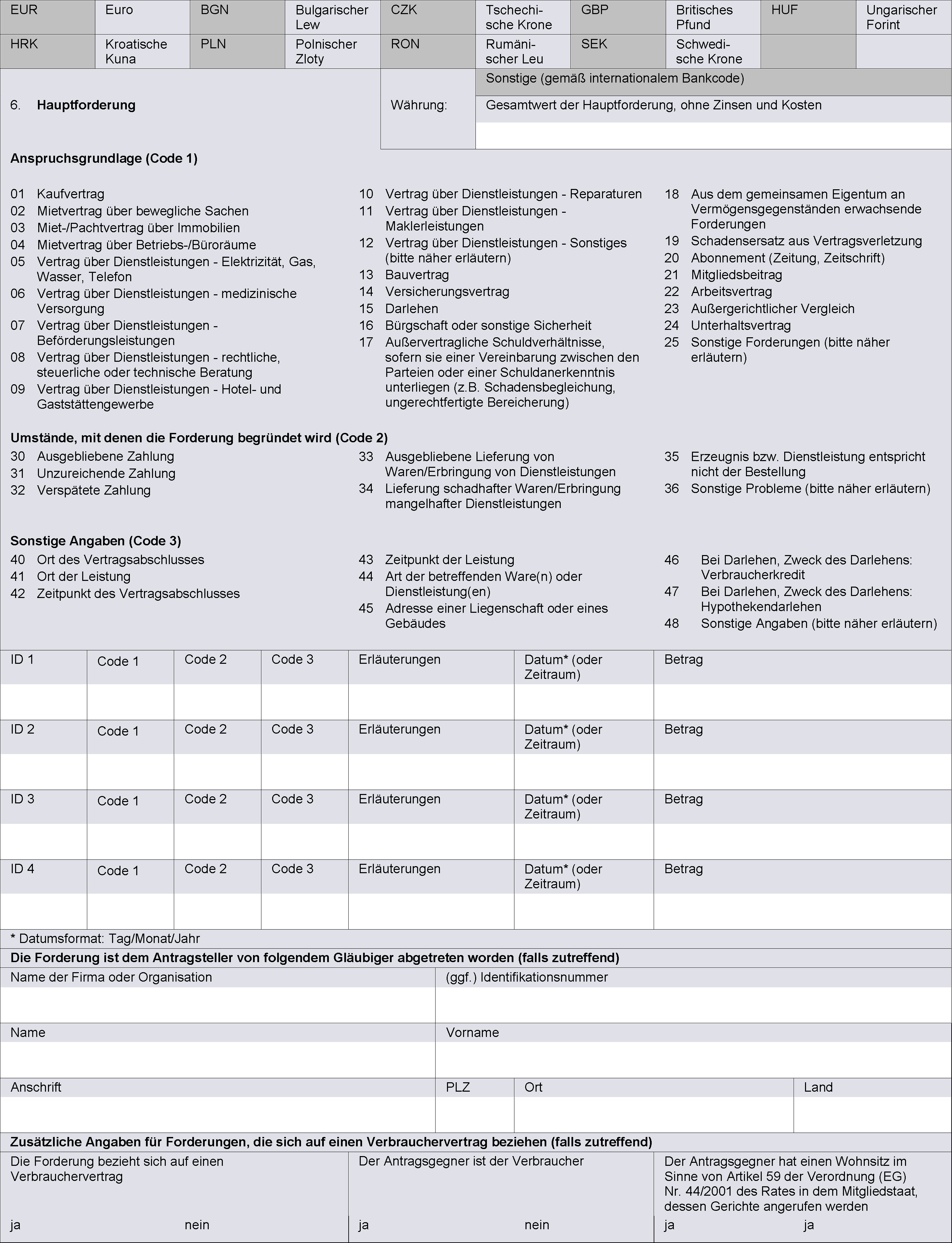Das Europäische Mahnverfahren gilt für die Beitreibung bezifferter Geldforderungen, die zum Zeitpunkt der Einreichung des Antrags auf Erlass eines Europäischen Zahlungsbefehls fällig sind.