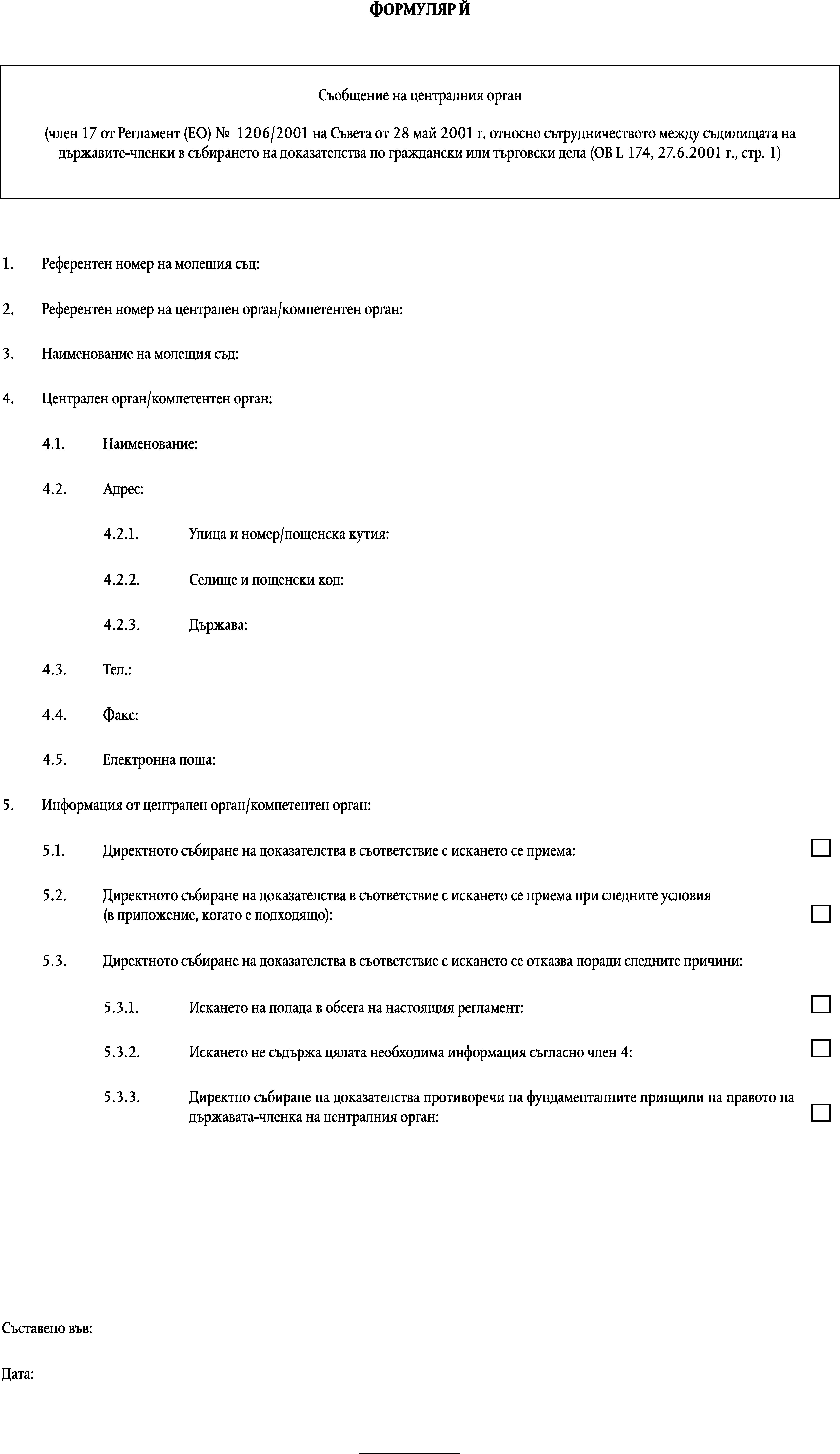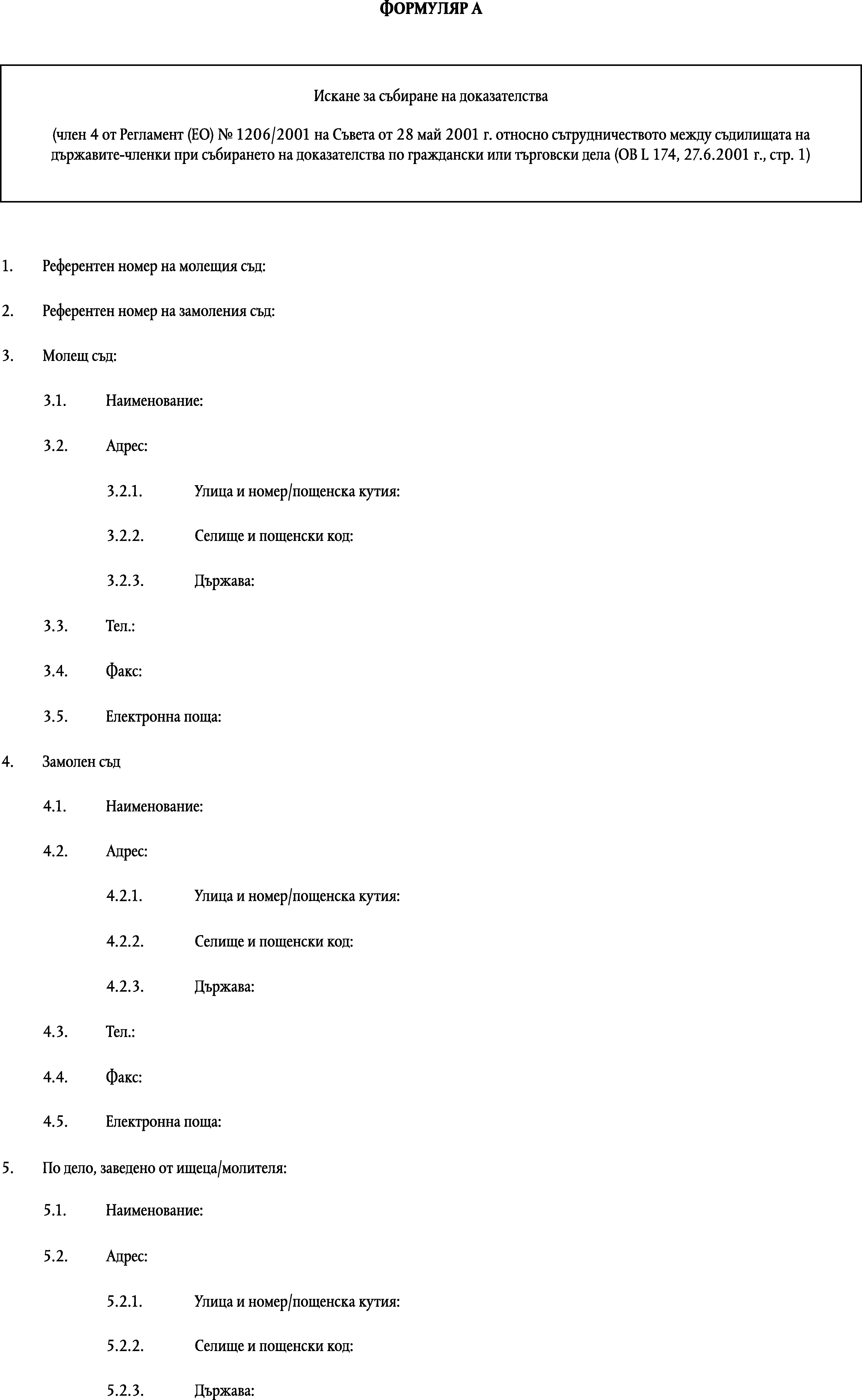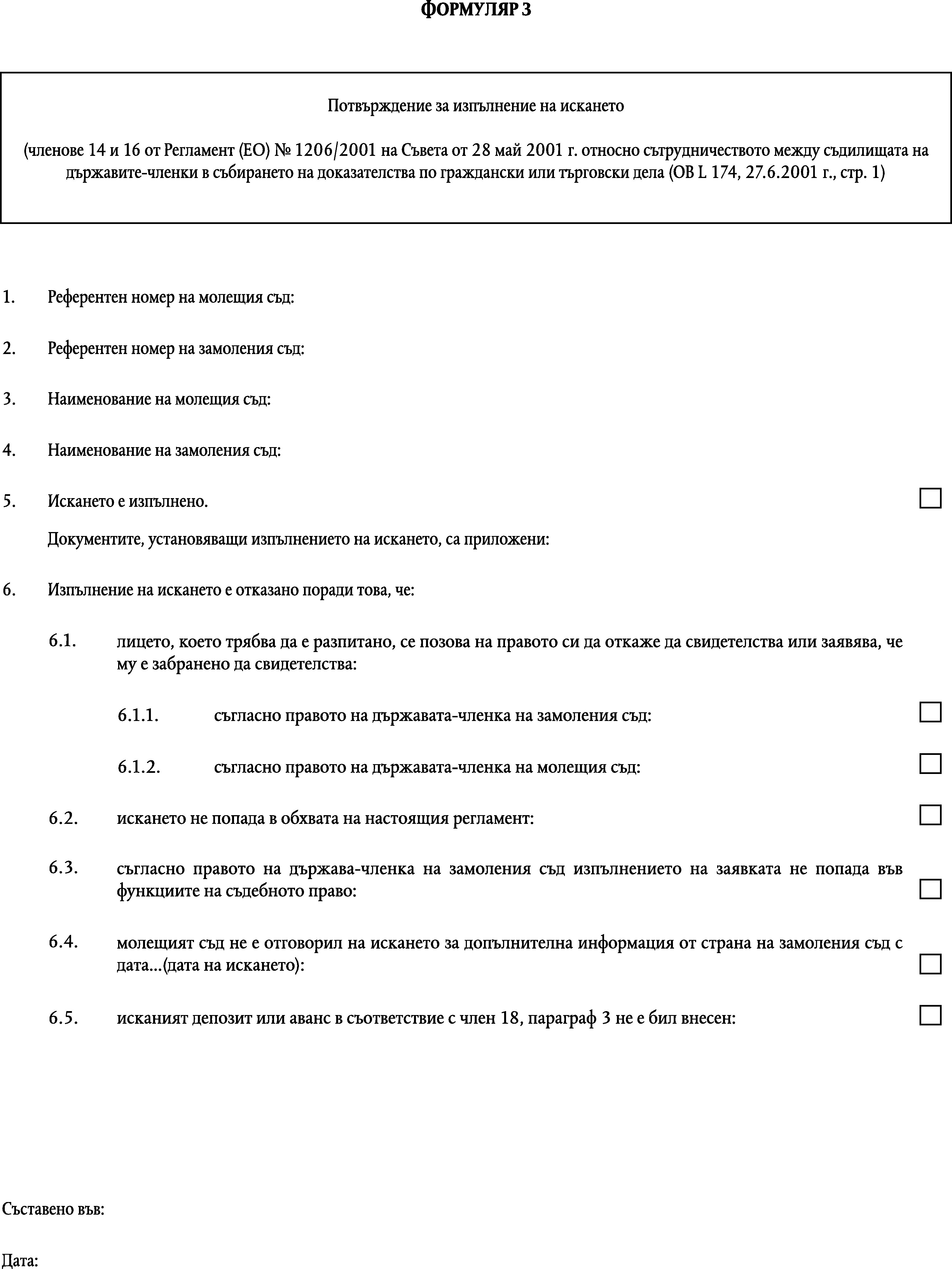 РЕГЛАМЕНТ (ЕО) № 1206/2001 НА СЪВЕТА