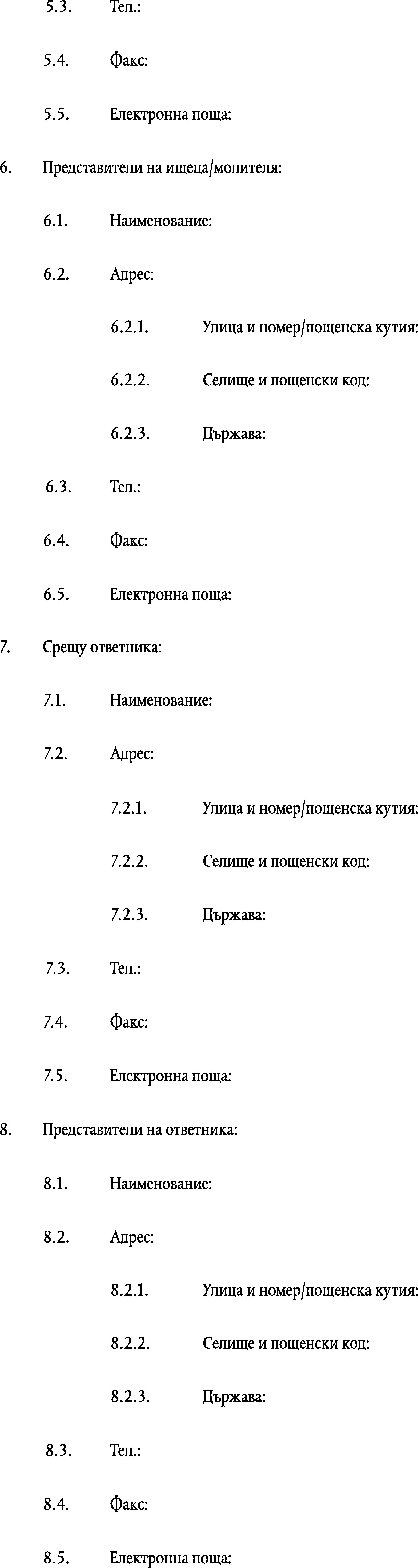 б)имената и адресите на страните по процедурата и техните представители, ако има такива;