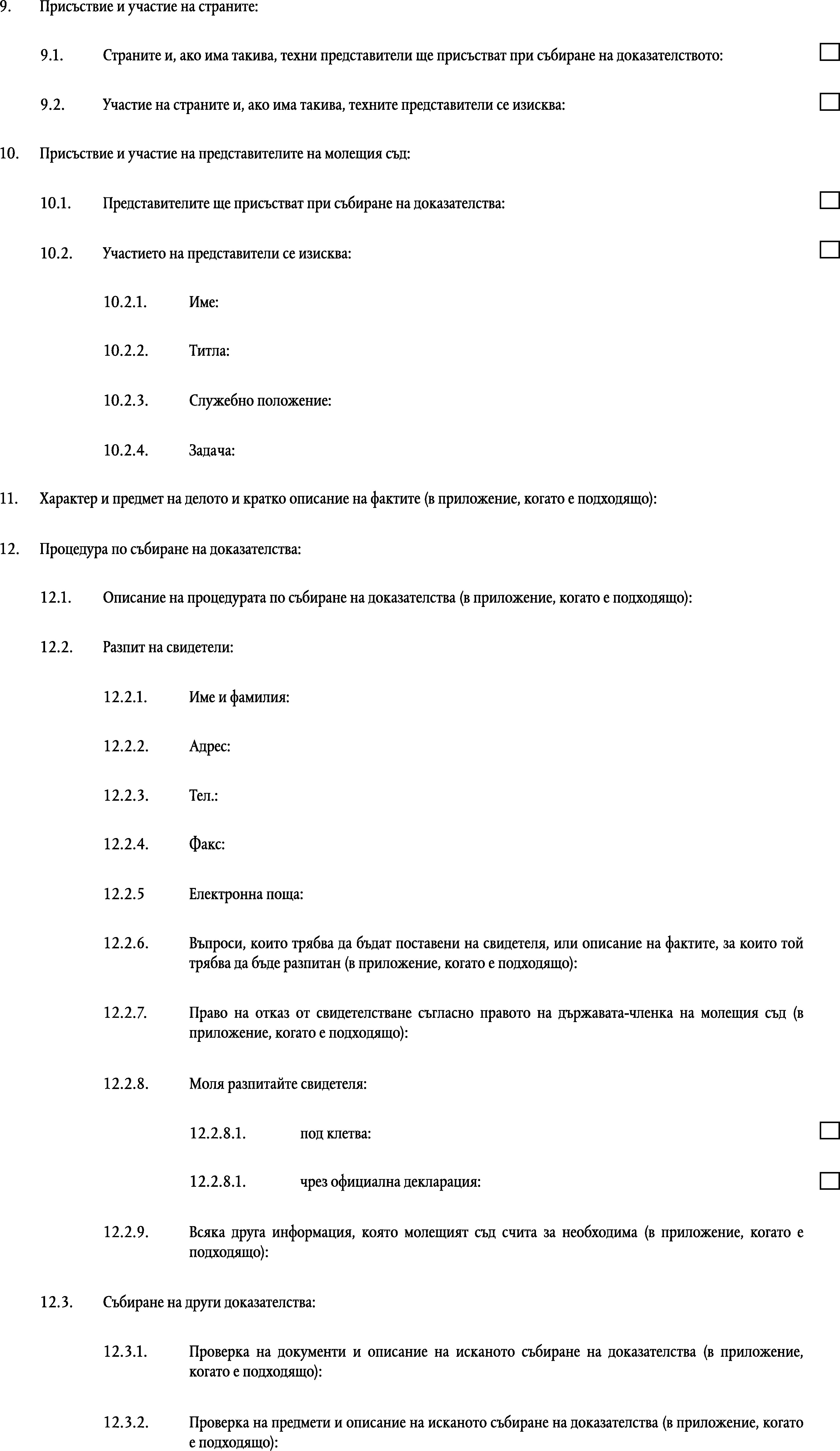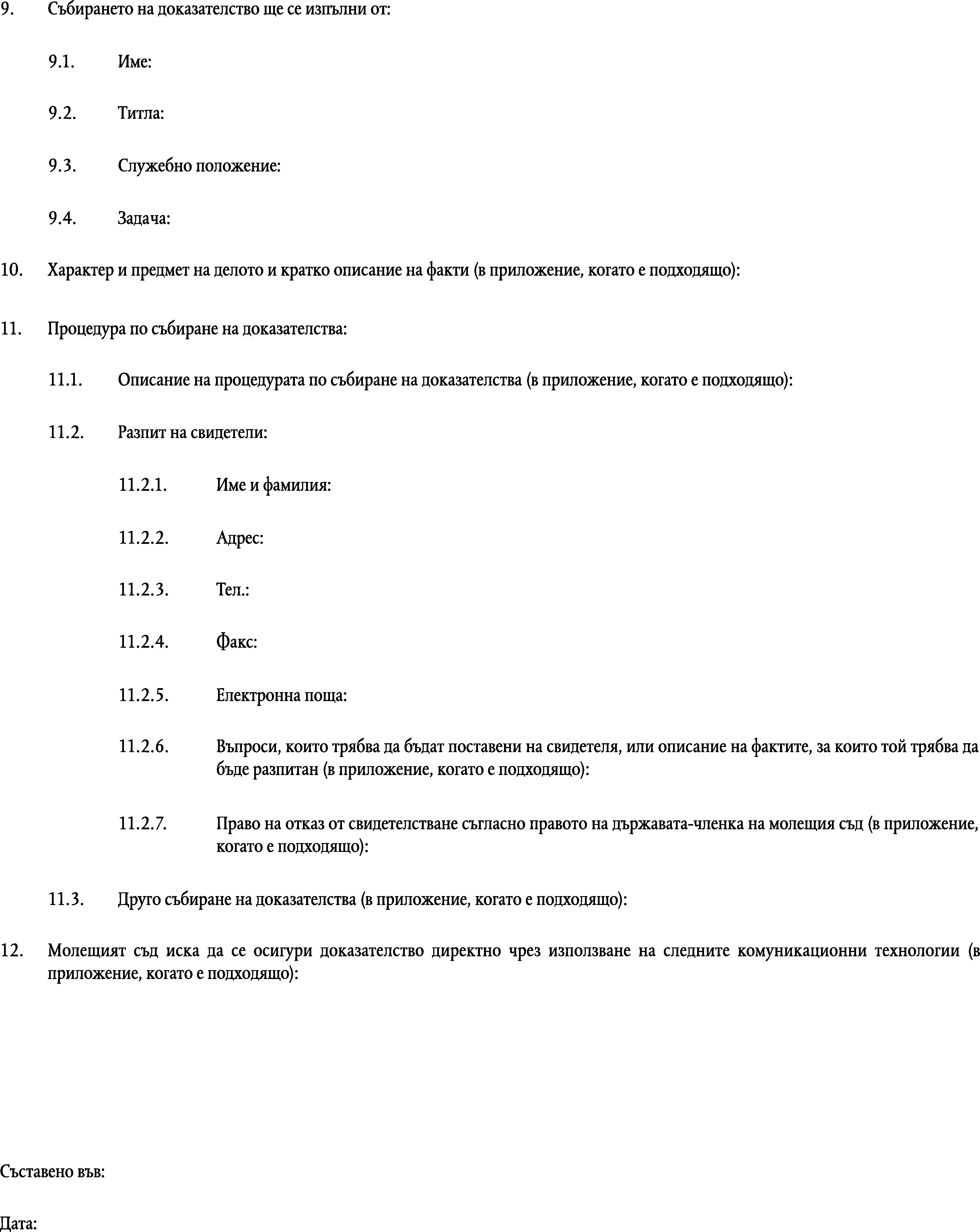 —въпроси, които следва да бъдат зададени на разпитваното(ните) лице(а), или обстоятелствата, за които то(те) трябва да бъде(ат) разпитано(и),
