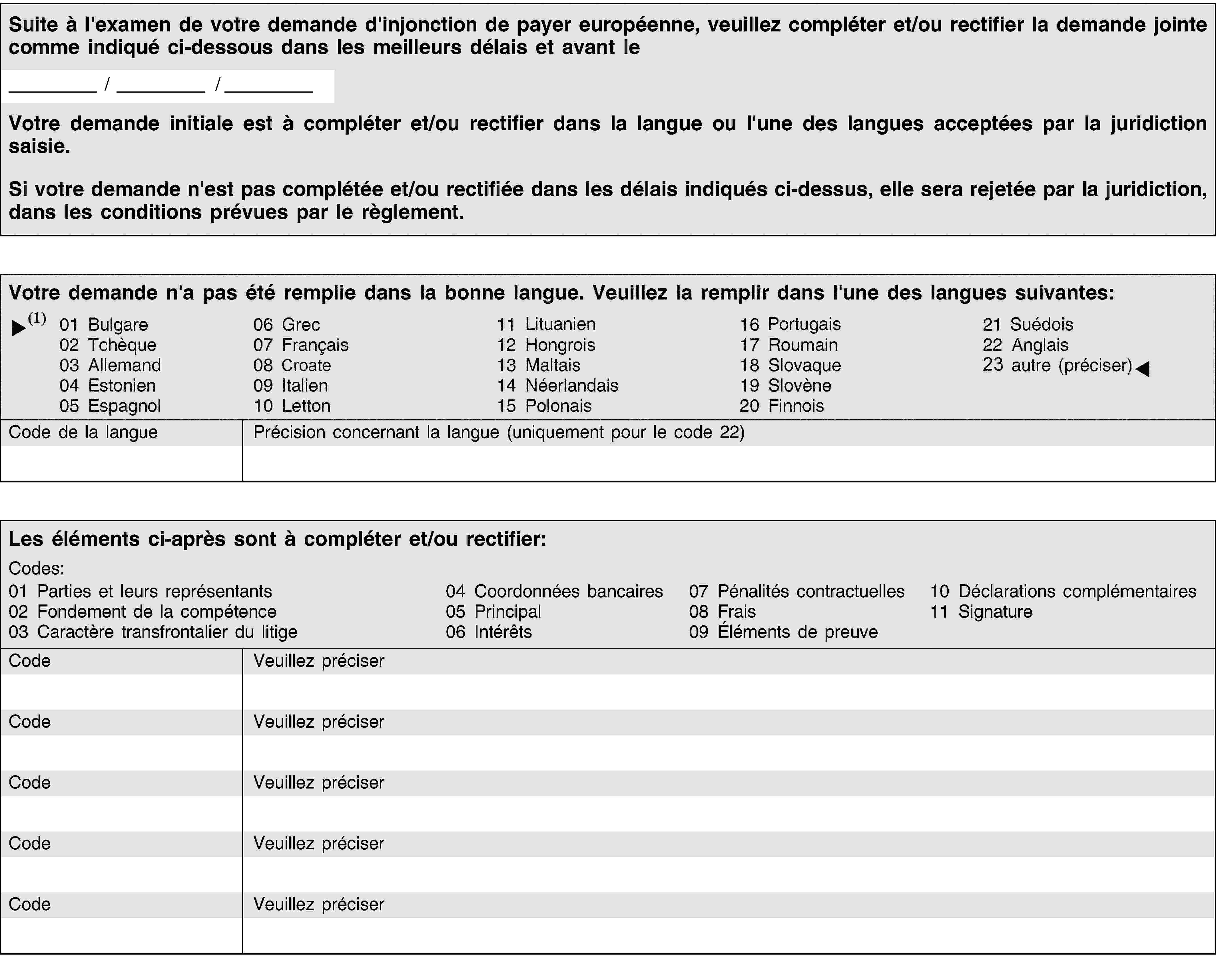 Pour former opposition, le défendeur peut utiliser le formulaire type établi par le présent règlement. Toutefois, les juridictions devraient tenir compte de toute autre forme écrite d'opposition si celle-ci est clairement exprimée. |
