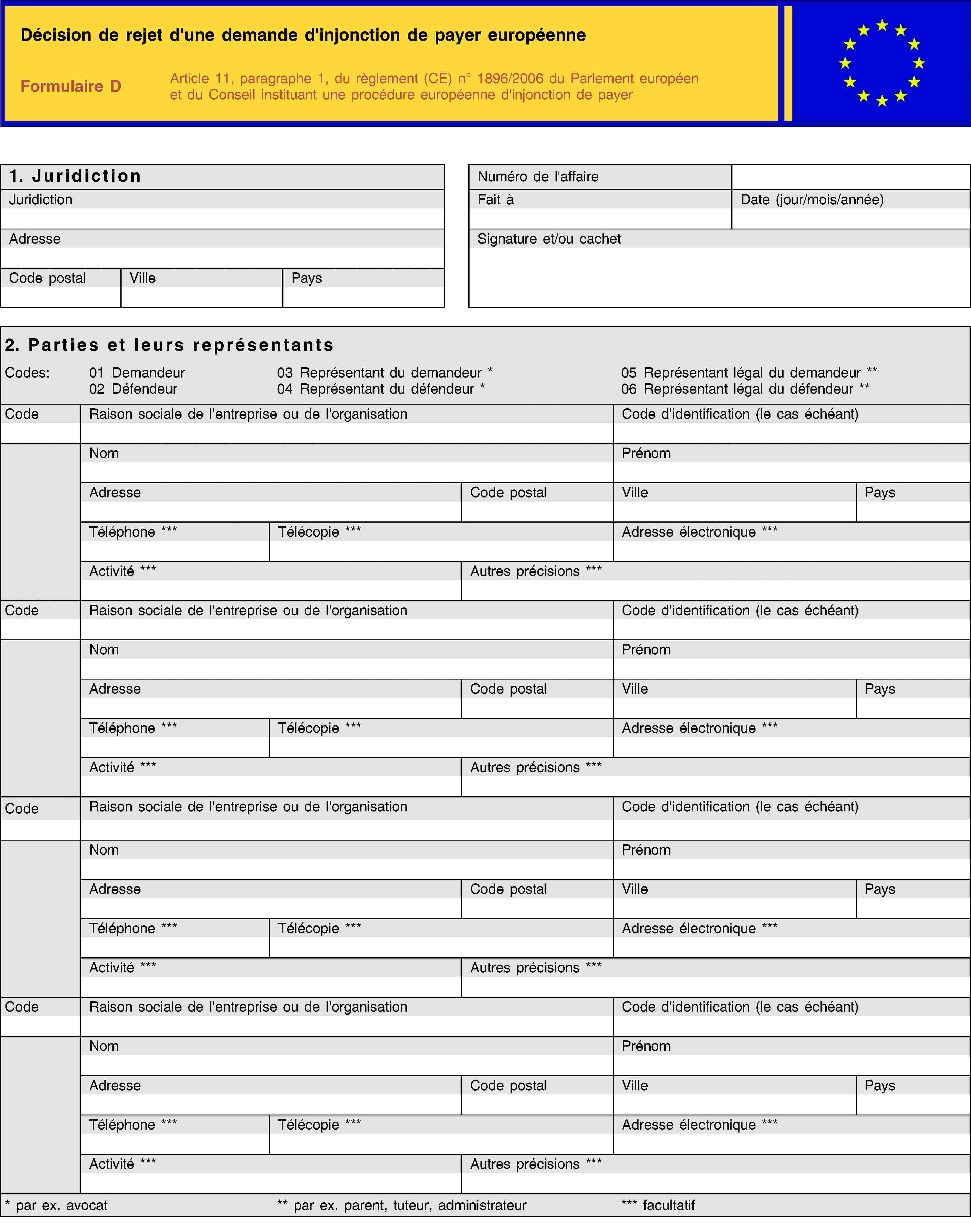 a) ni pour le demandeur en ce qui concerne la demande d'injonction de payer européenne;