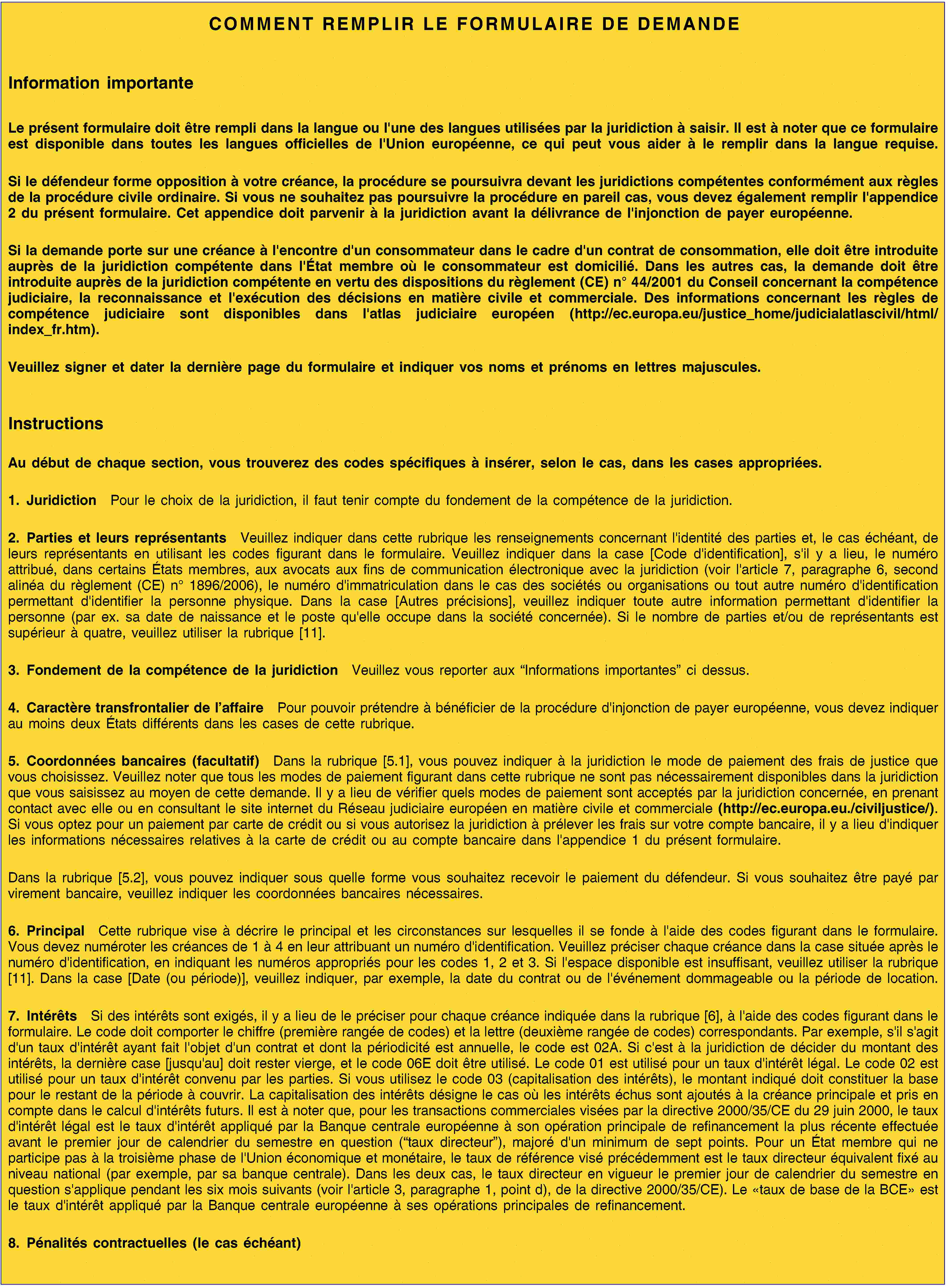 Le demandeur devrait être tenu de fournir, dans la demande d'injonction de payer européenne, des informations suffisamment précises pour identifier et justifier clairement la créance afin de permettre au défendeur de décider en connaissance de cause soit de s'y opposer, soit de ne pas la contester. |