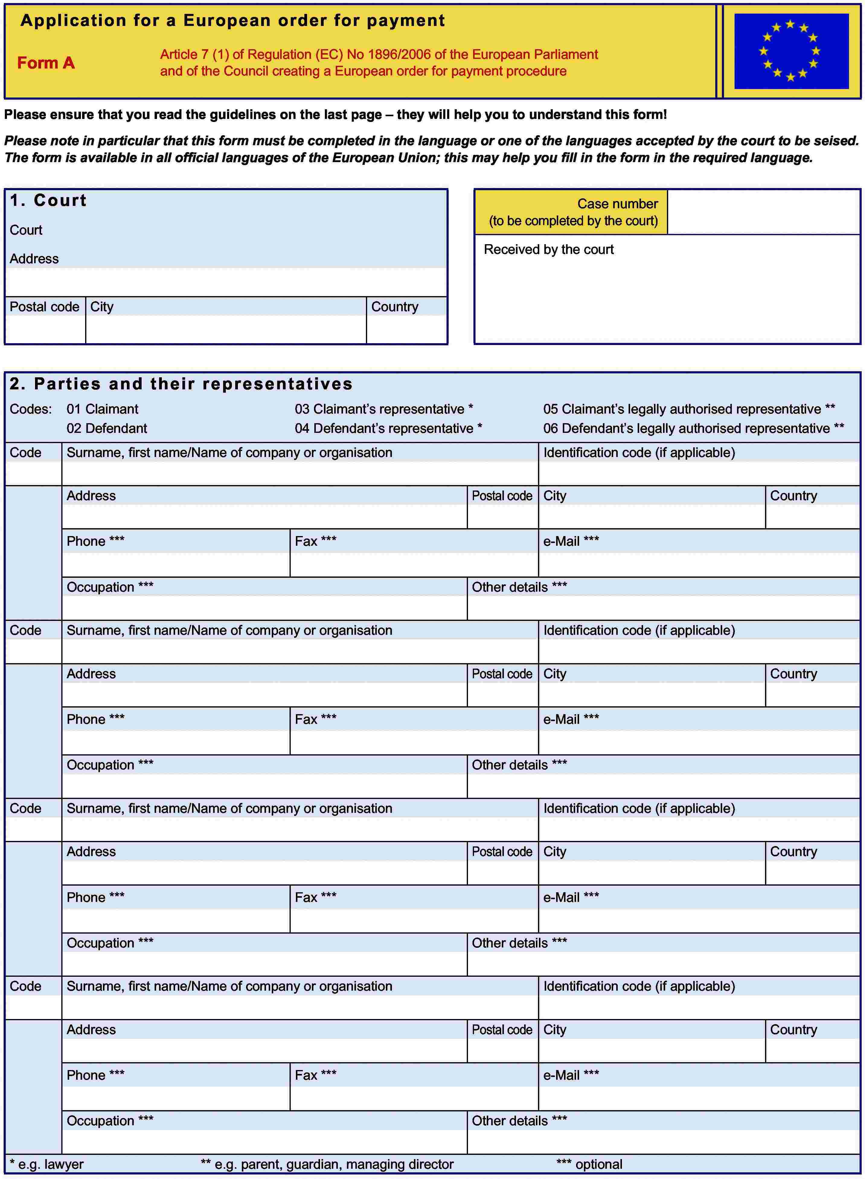 The procedure should be based, to the largest extent possible, on the use of standard forms in any communication between the court and the parties in order to facilitate its administration and enable the use of automatic data processing. |