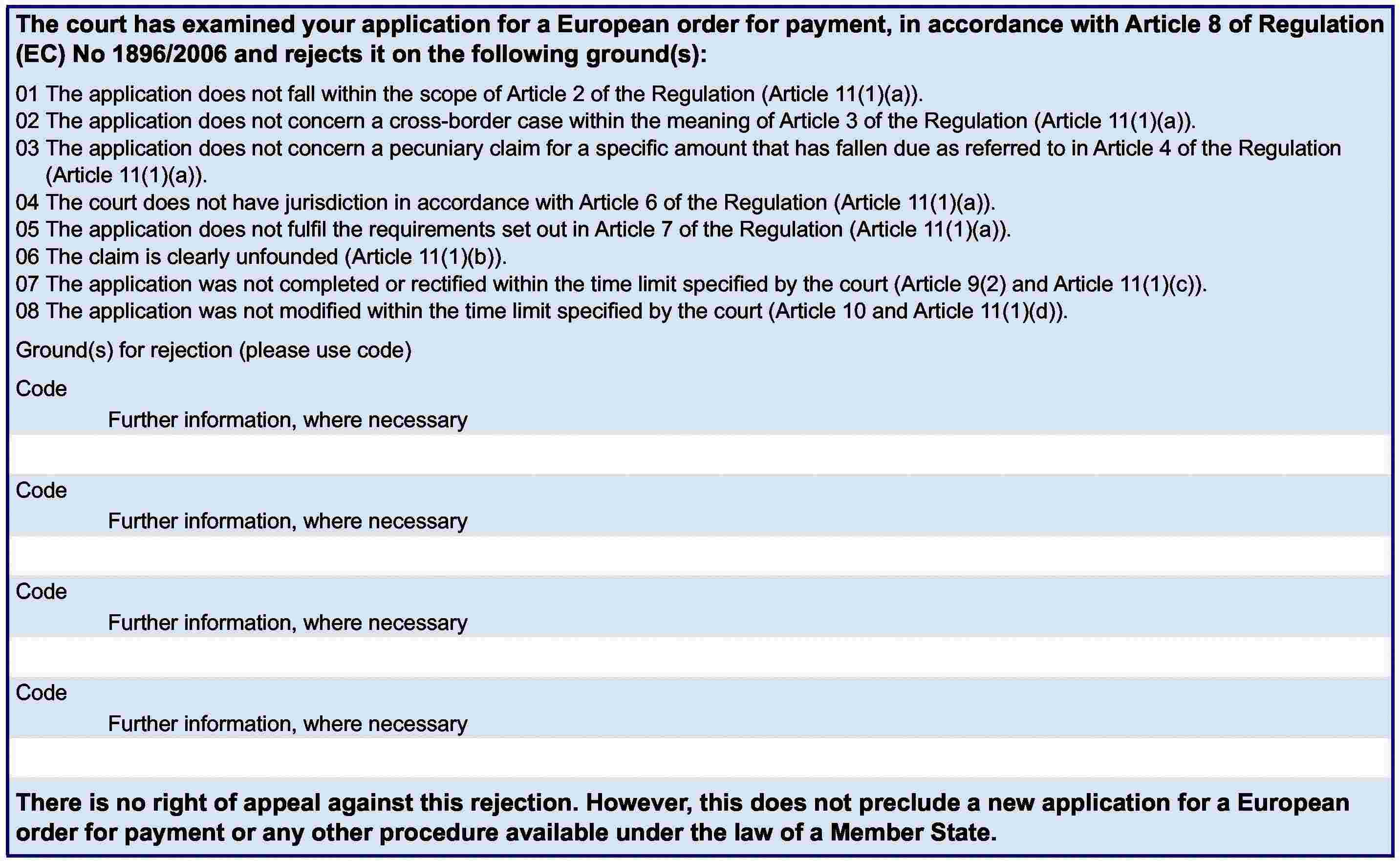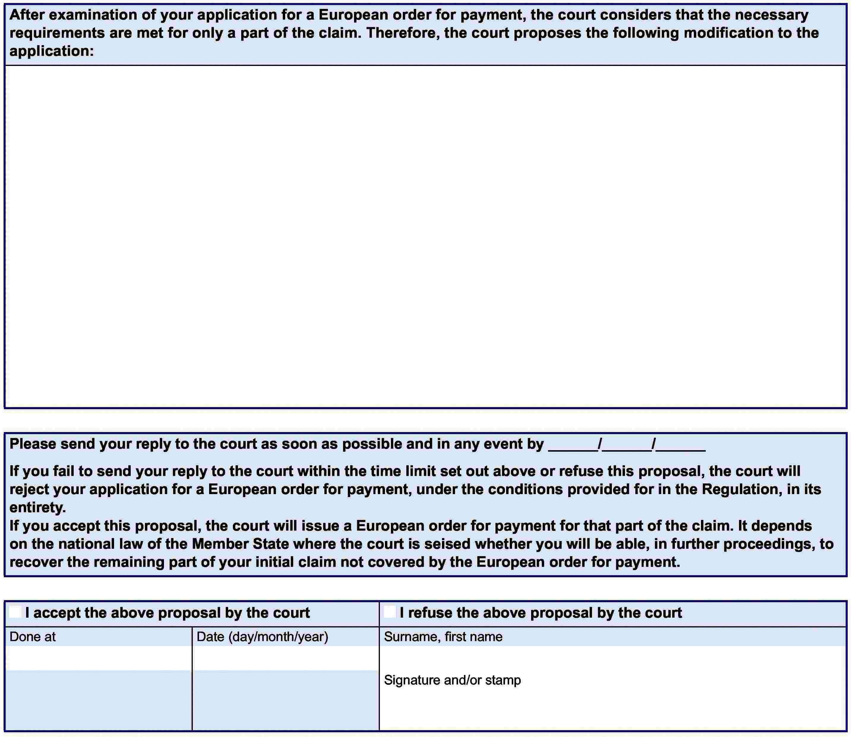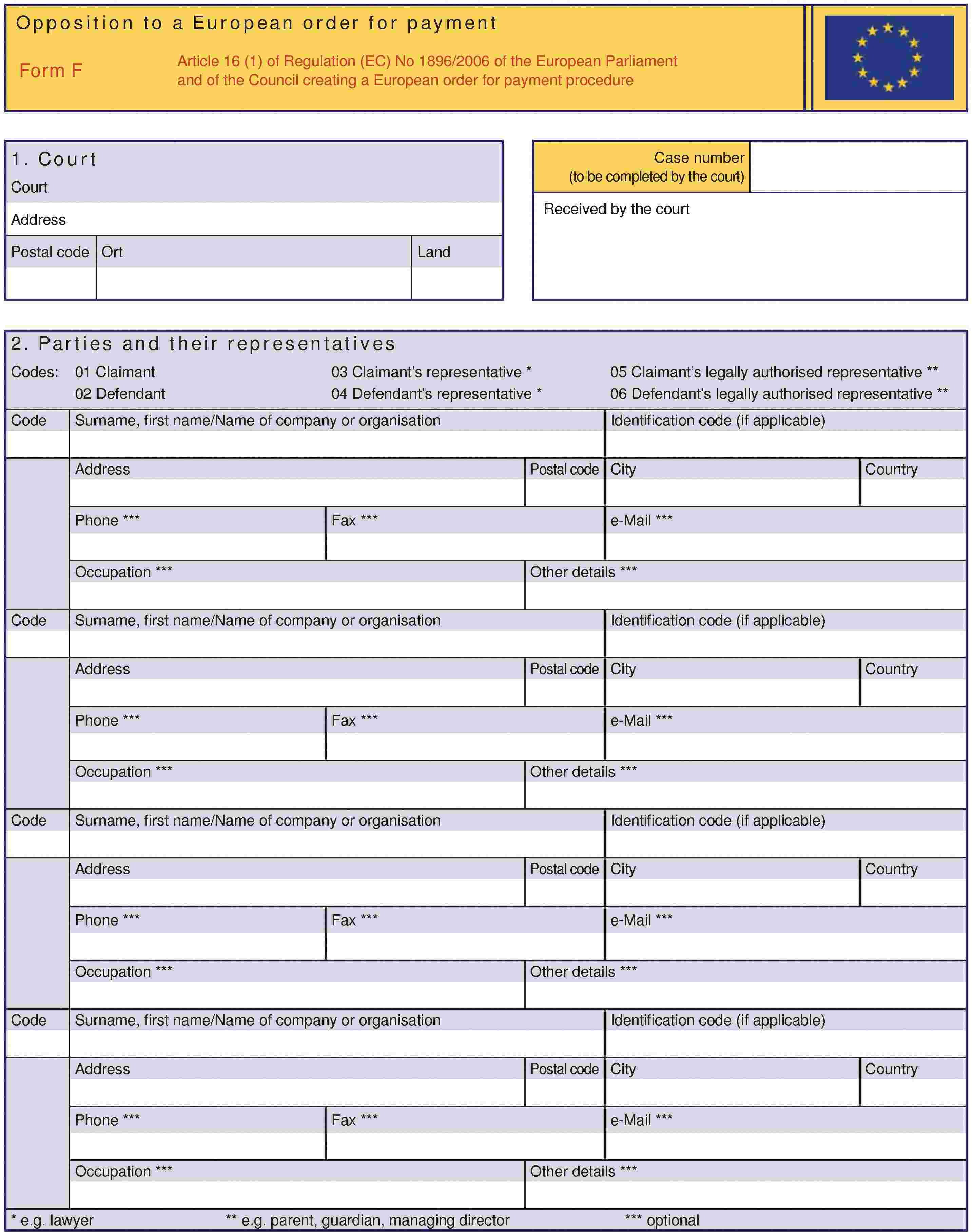 The defendant may submit his statement of opposition using the standard form set out in this Regulation. However, the courts should take into account any other written form of opposition if it is expressed in a clear manner. |