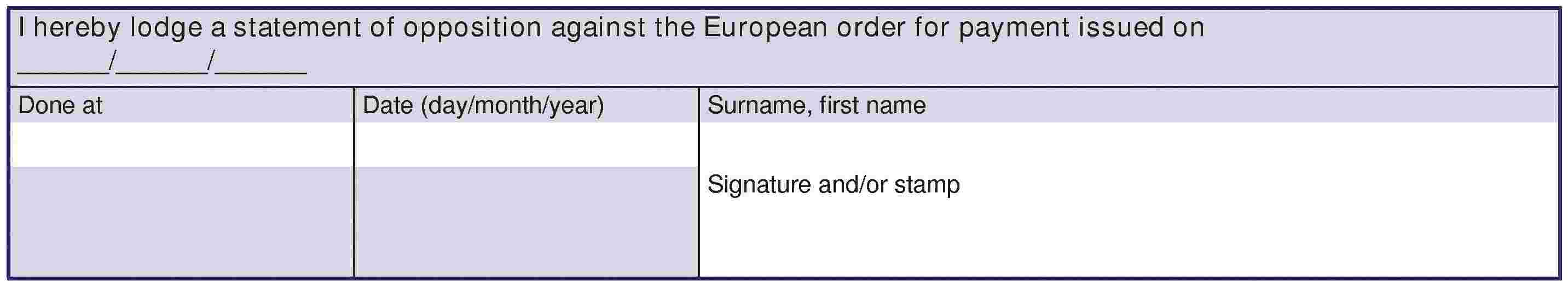 (b) for the defendant in respect of the statement of opposition to a European order for payment.