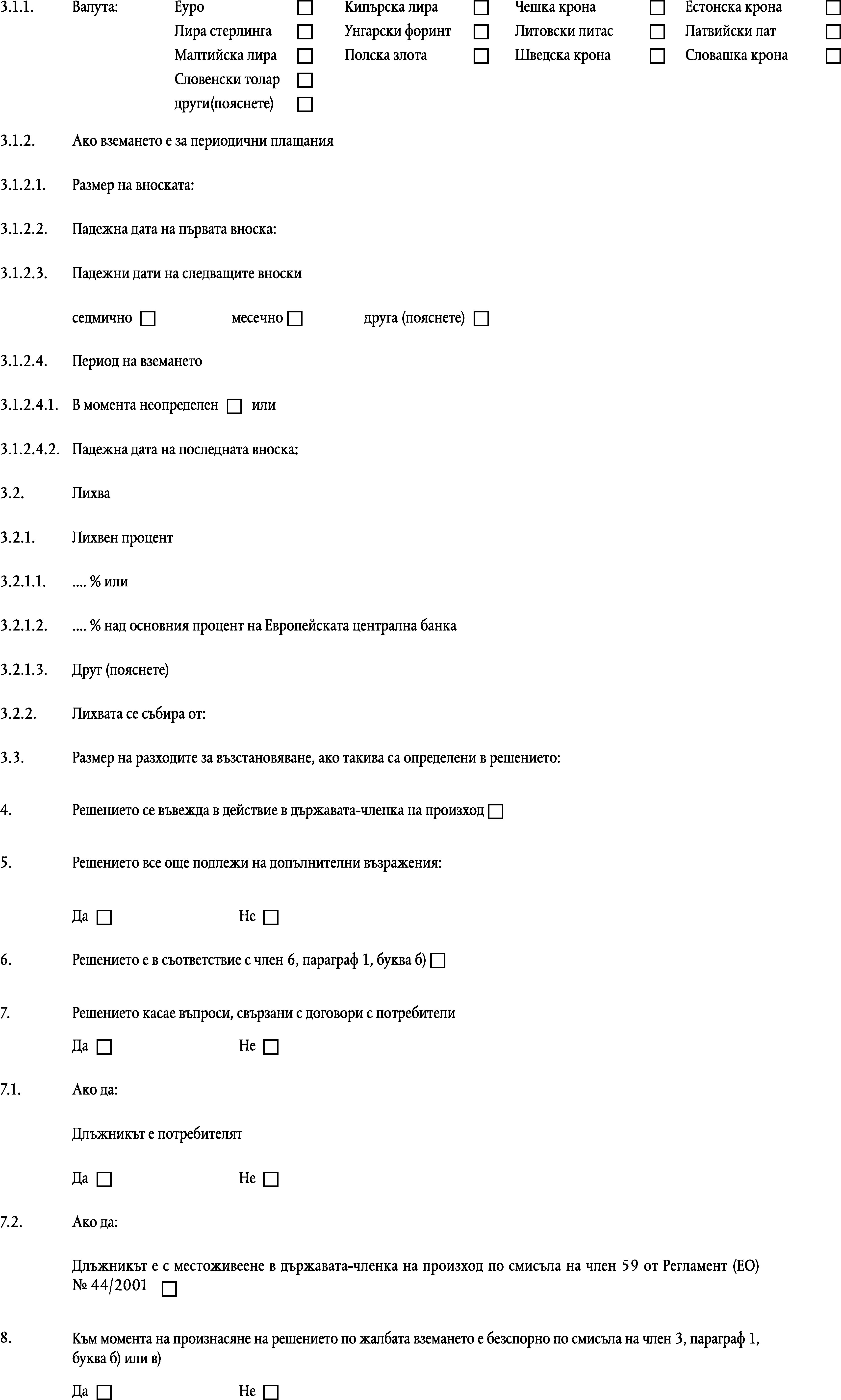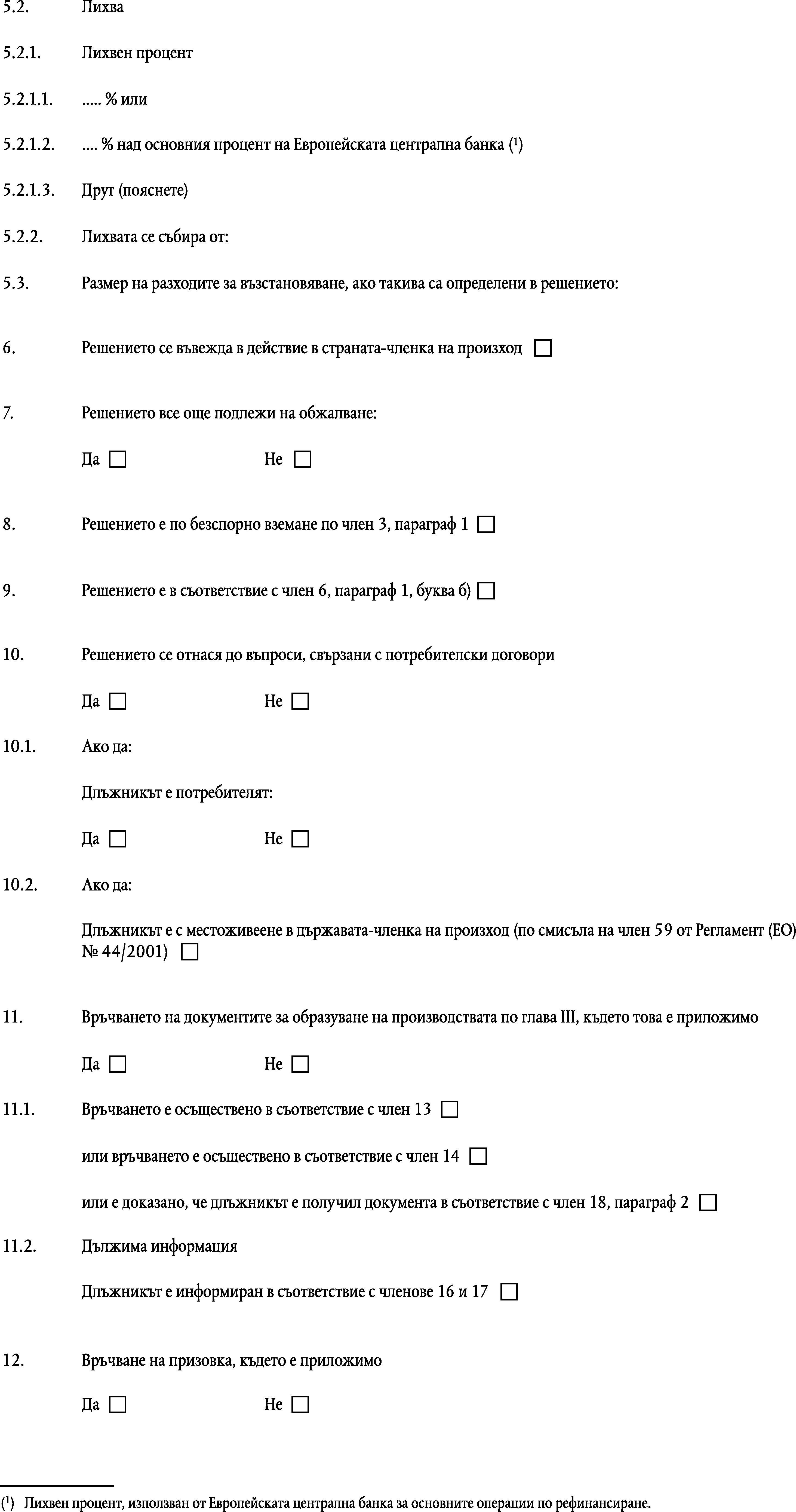 в)ако се търси лихва по вземането, лихвения процент и периода, за който се търси лихва, освен ако лихвата, която е установена със закон, е прибавена автоматично към главницата по сила на закона на държавата-членка по произход;