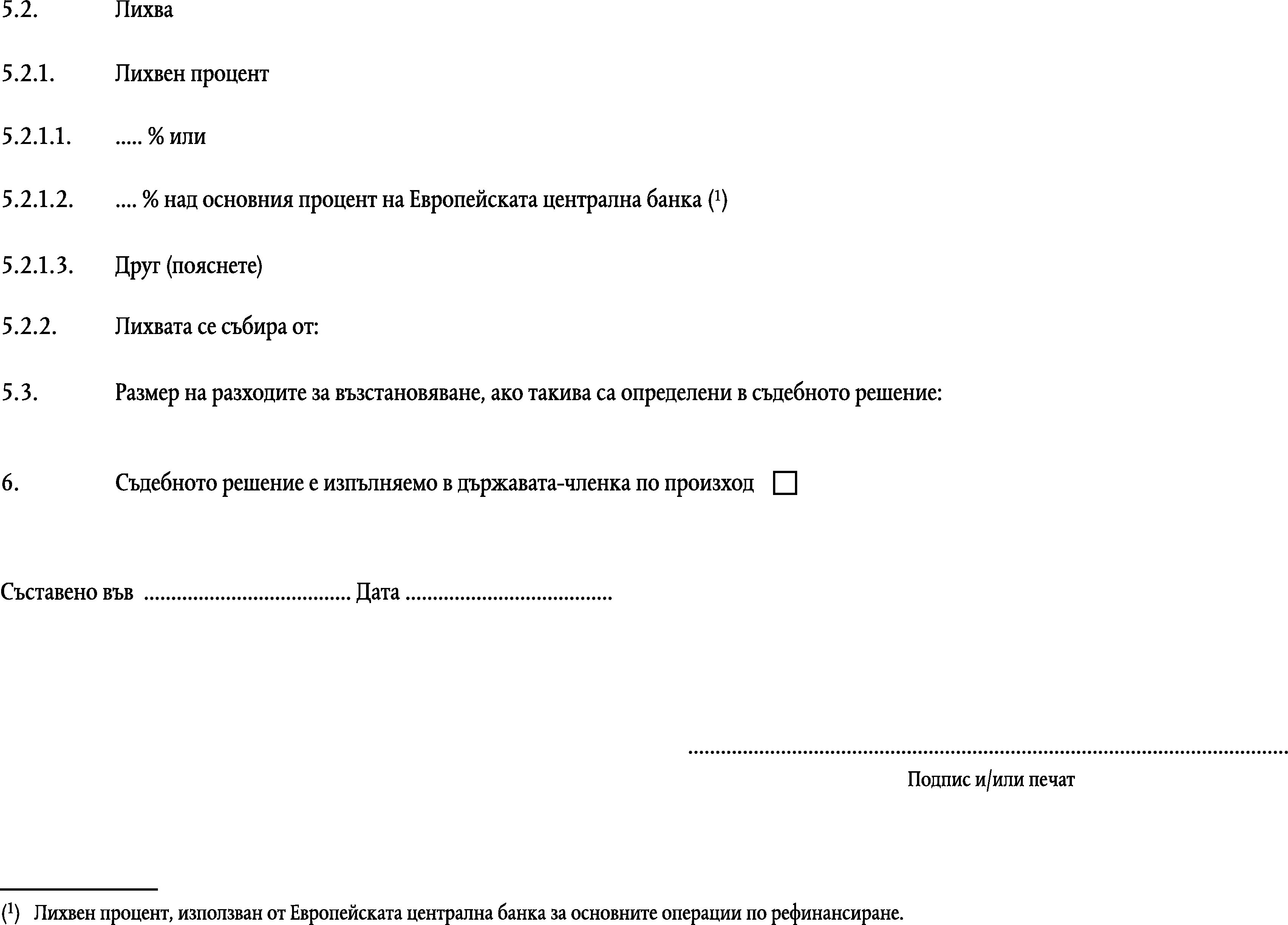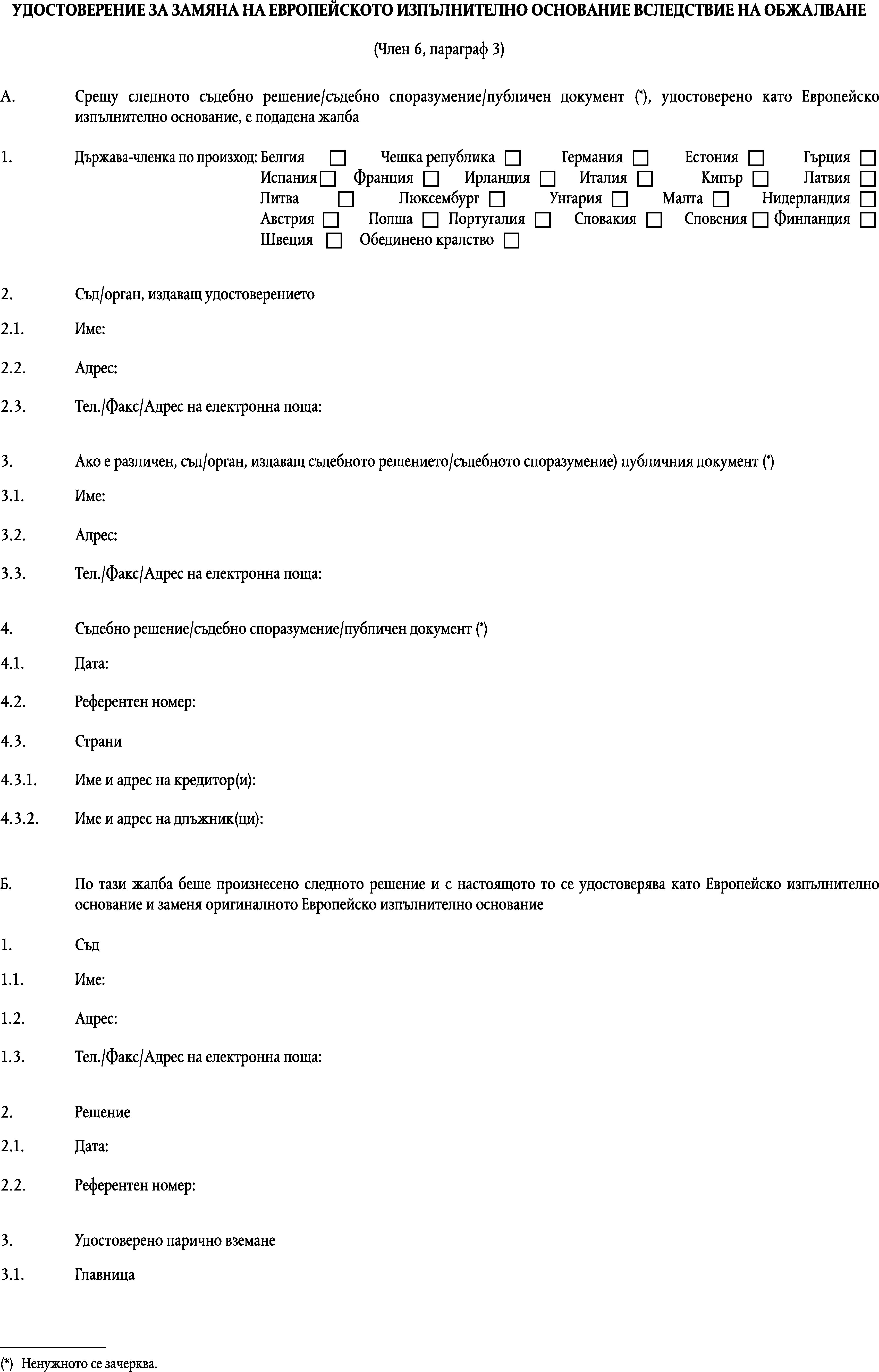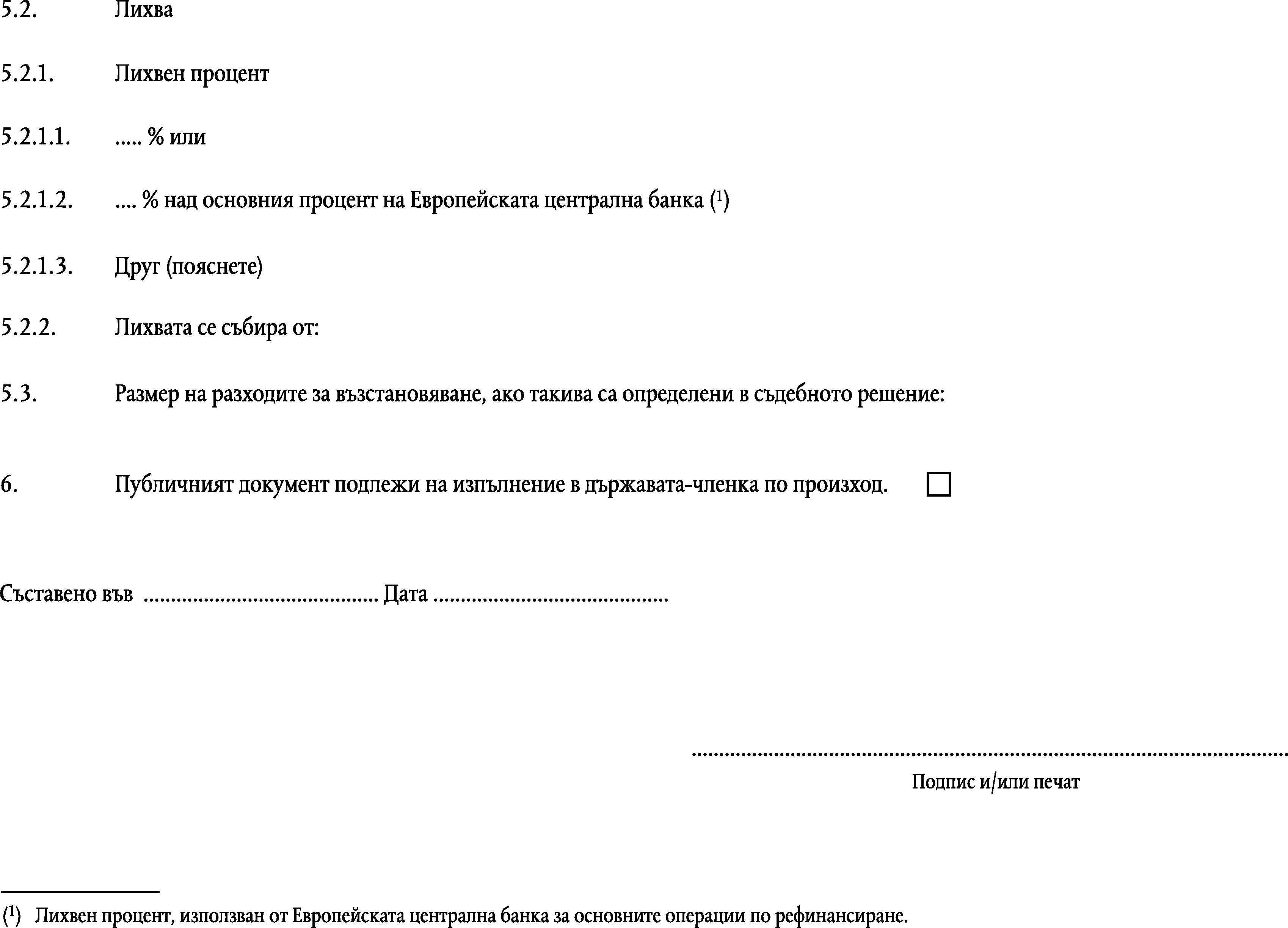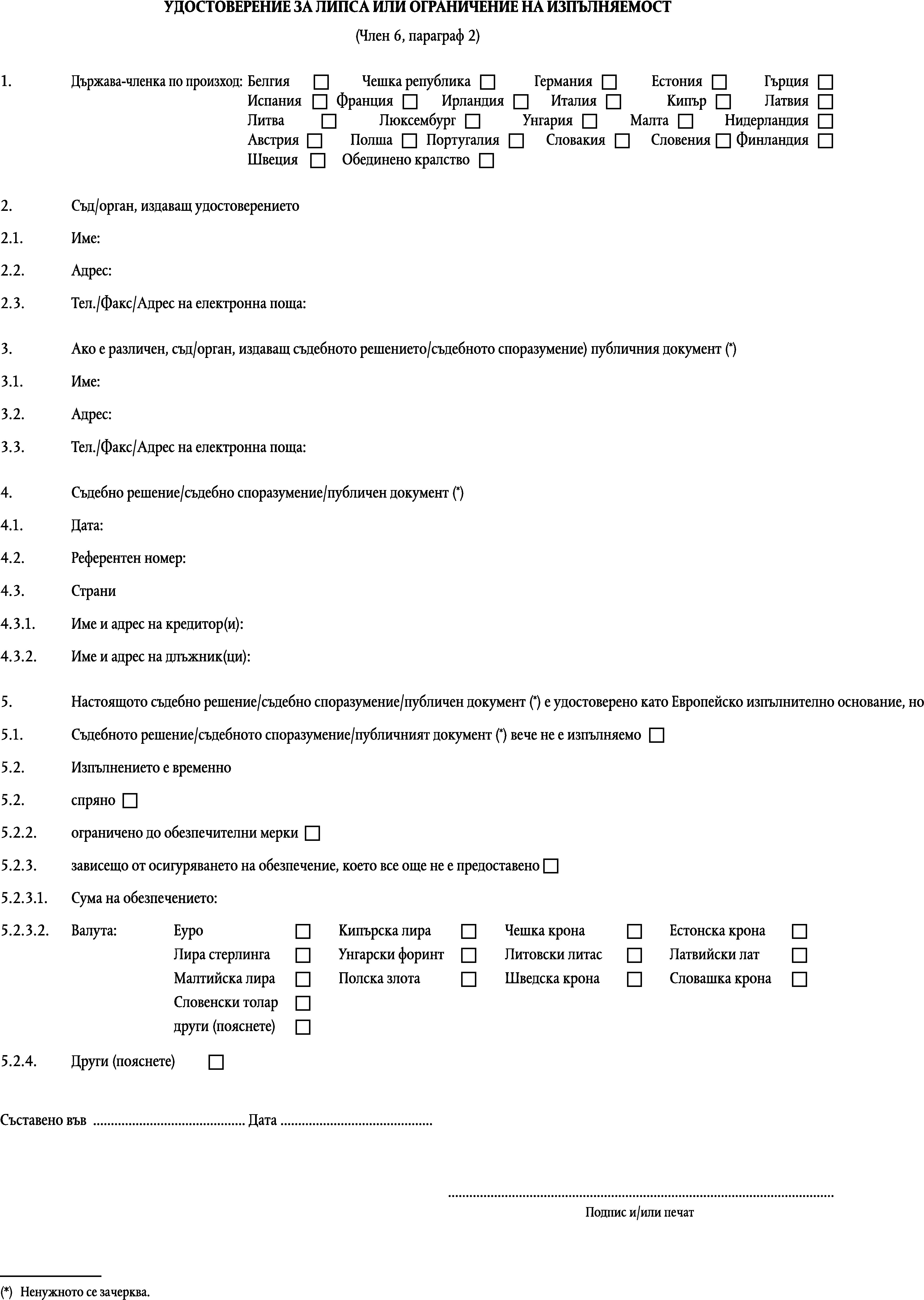 Изпълнително основание, което се удостоверява като европейско изпълнително основание