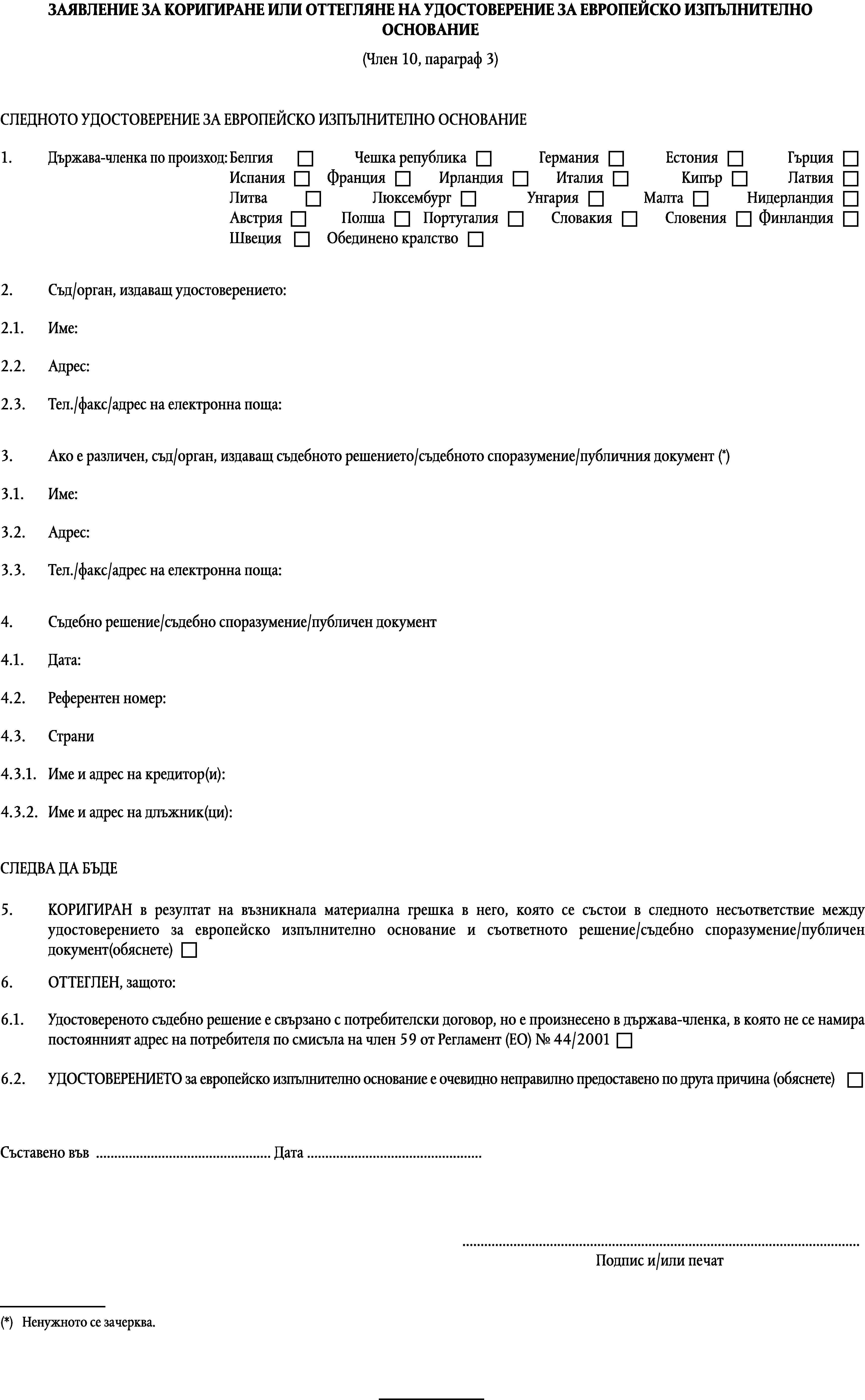 —поискал поправяне или оттегляне на удостоверението за европейско изпълнително основание съгласно член 10,