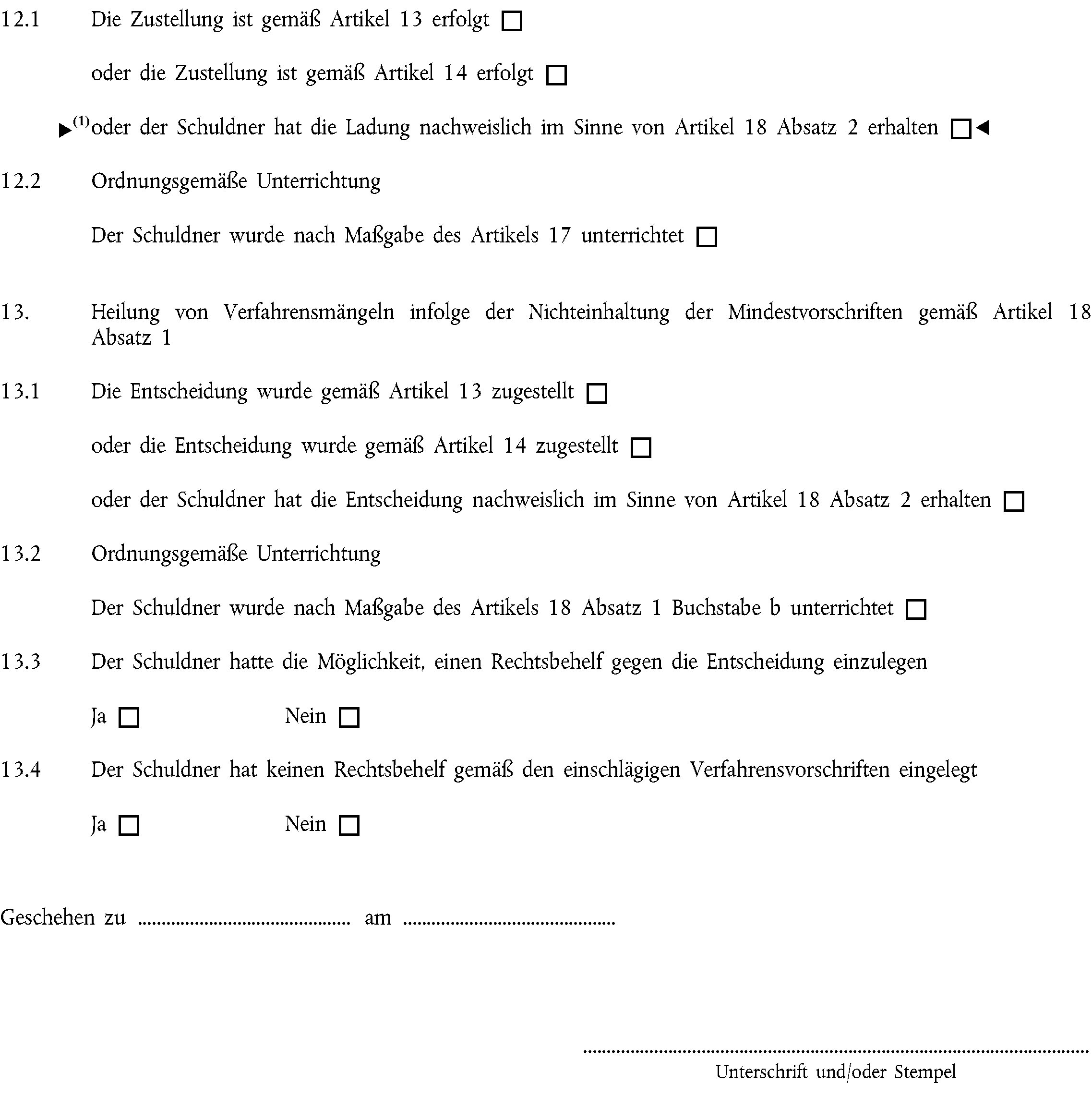 (1) Ergänzend zu den Artikeln 13 bis 18 kann eine Entscheidung nur dann als Europäischer Vollstreckungstitel bestätigt werden, wenn der Schuldner nach dem Recht des Ursprungsmitgliedstaats berechtigt ist, eine Überprüfung der Entscheidung zu beantragen, falls