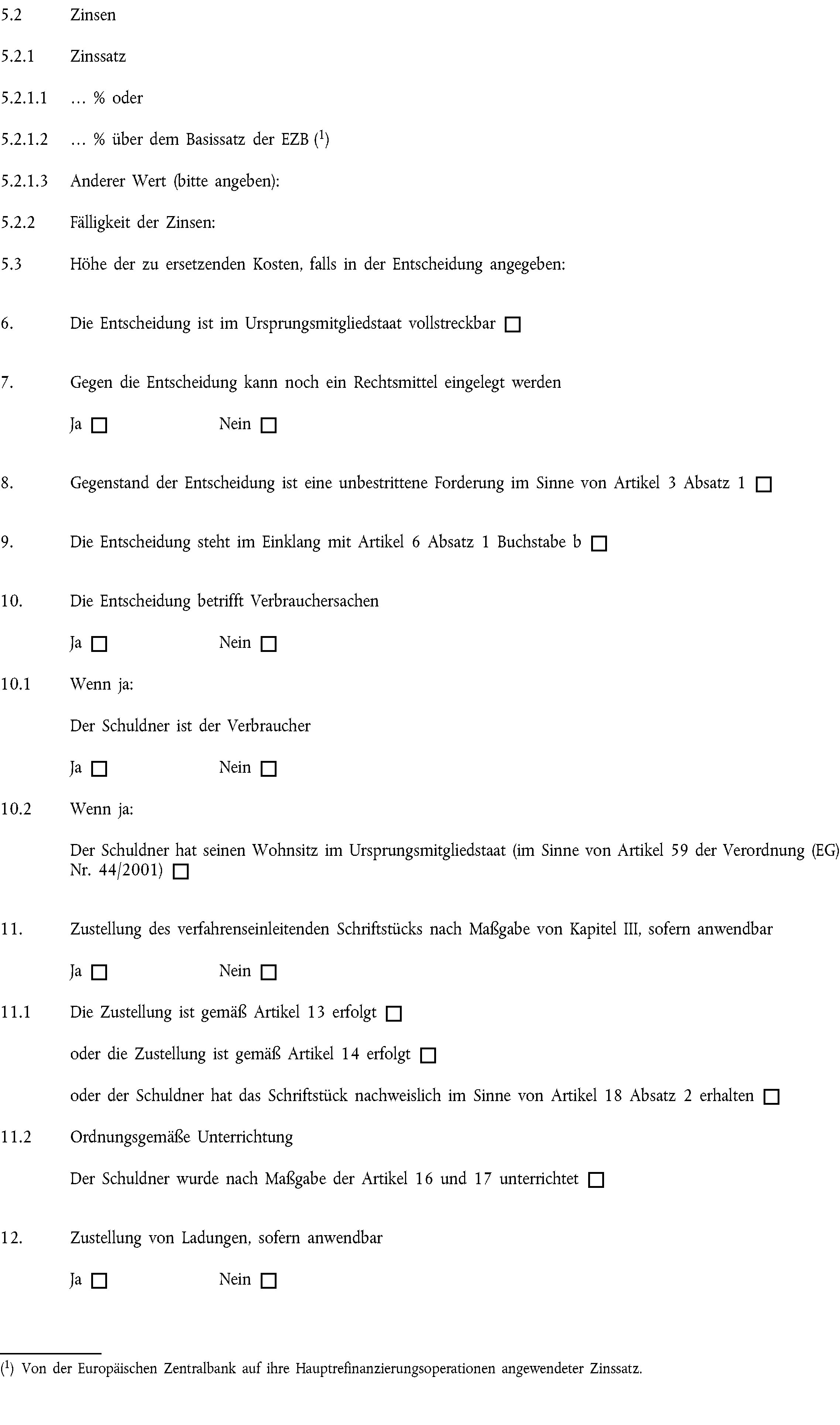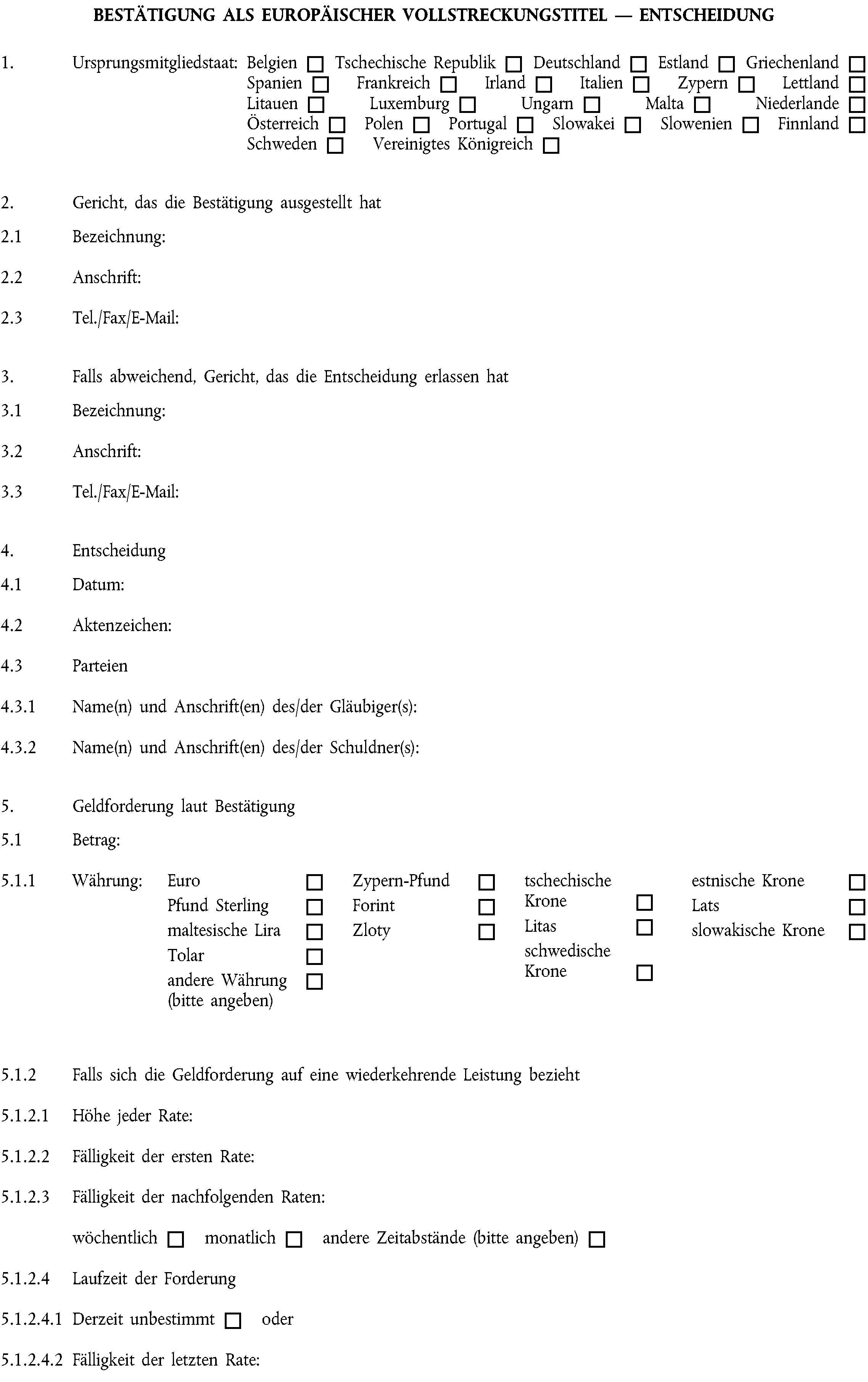 (1) Die Bestätigung als Europäischer Vollstreckungstitel wird unter Verwendung des Formblatts in Anhang I ausgestellt.
