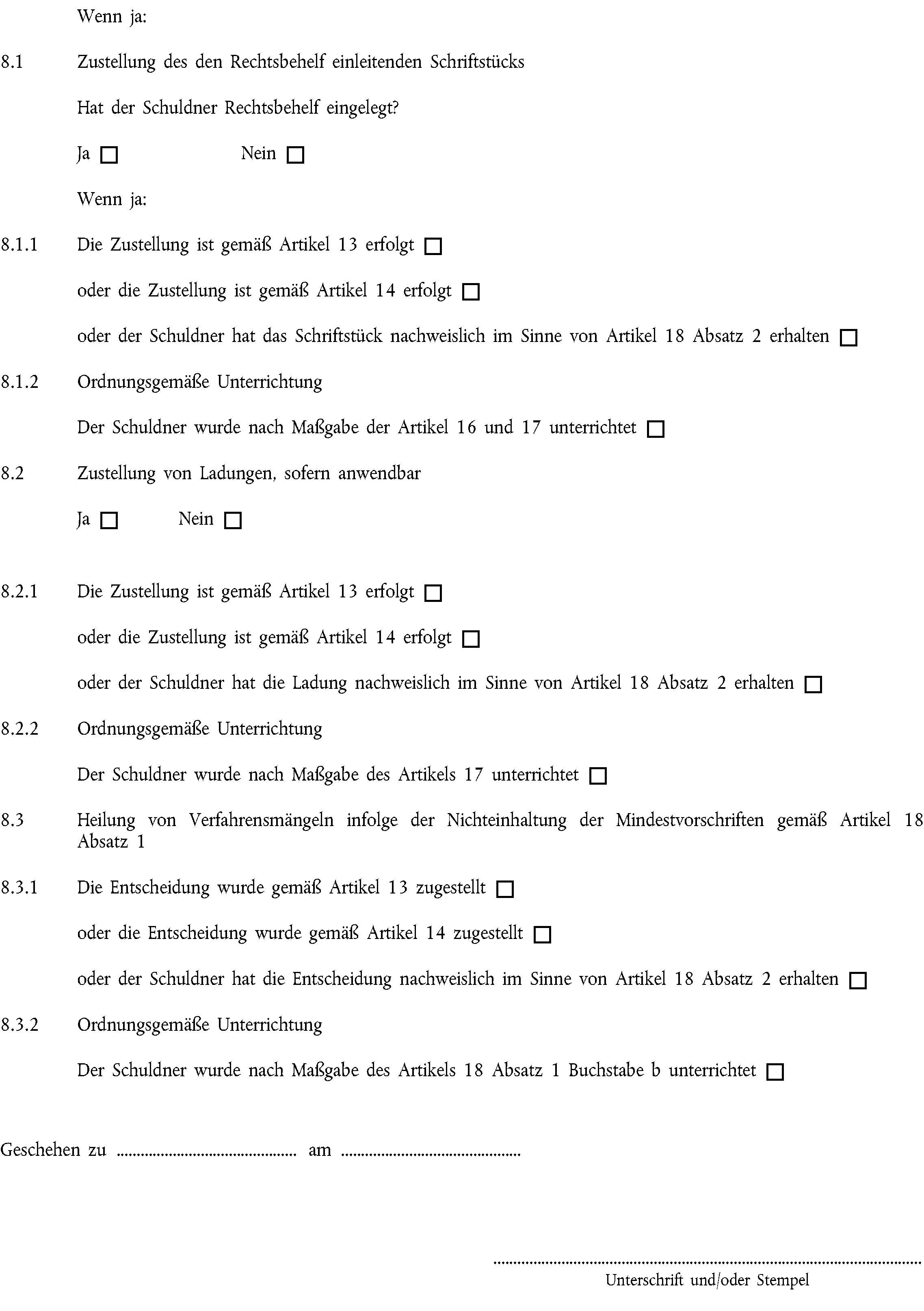 i)das verfahrenseinleitende oder ein gleichwertiges Schriftstück oder gegebenenfalls die Ladung zu einer Gerichtsverhandlung in einer der in Artikel 14 genannten Formen zugestellt wurden, und