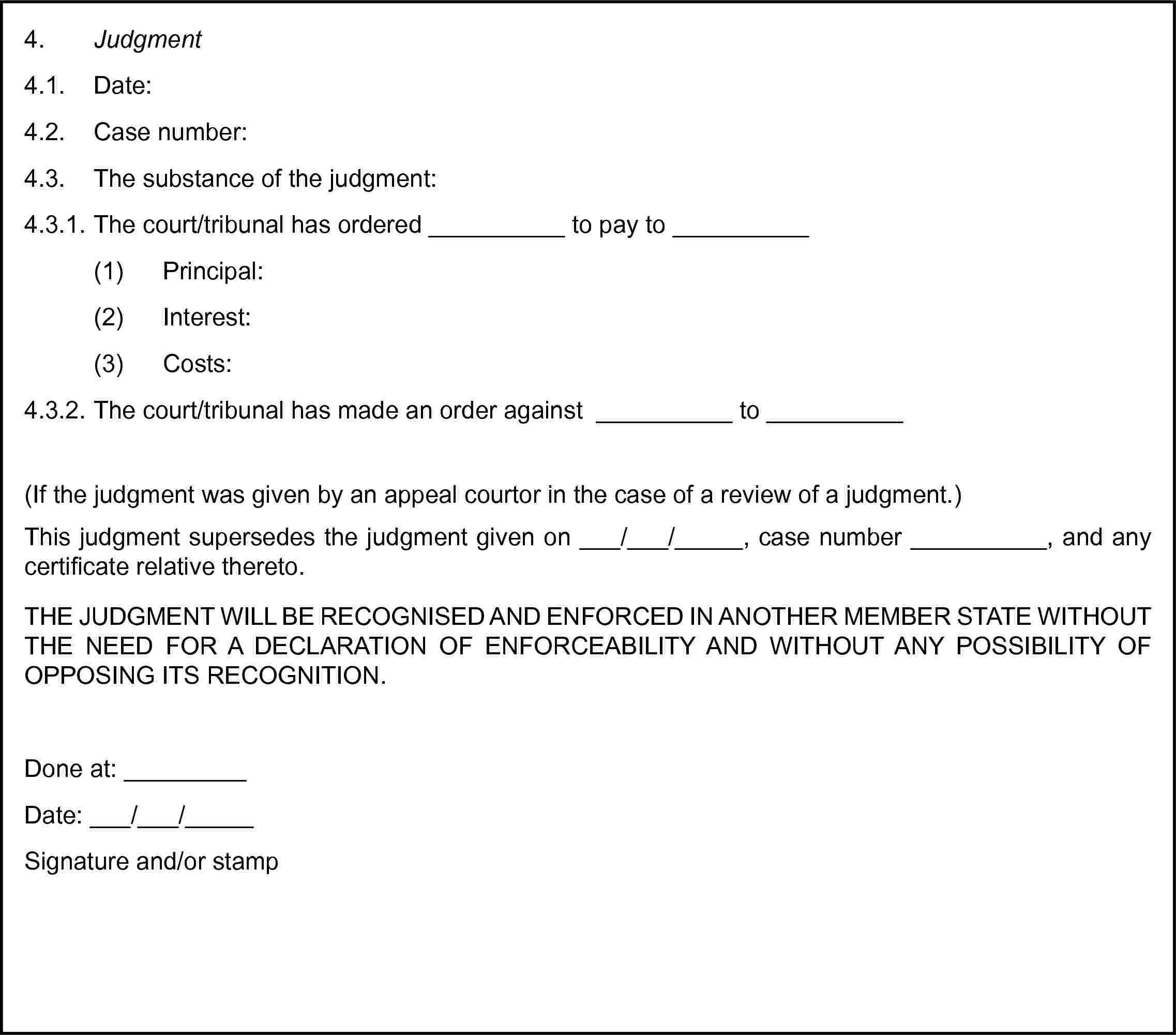 2. At the request of one of the parties, the court or tribunal shall issue a certificate concerning a judgment in the European Small Claims Procedure using standard Form D, as set out in Annex IV, at no extra cost.