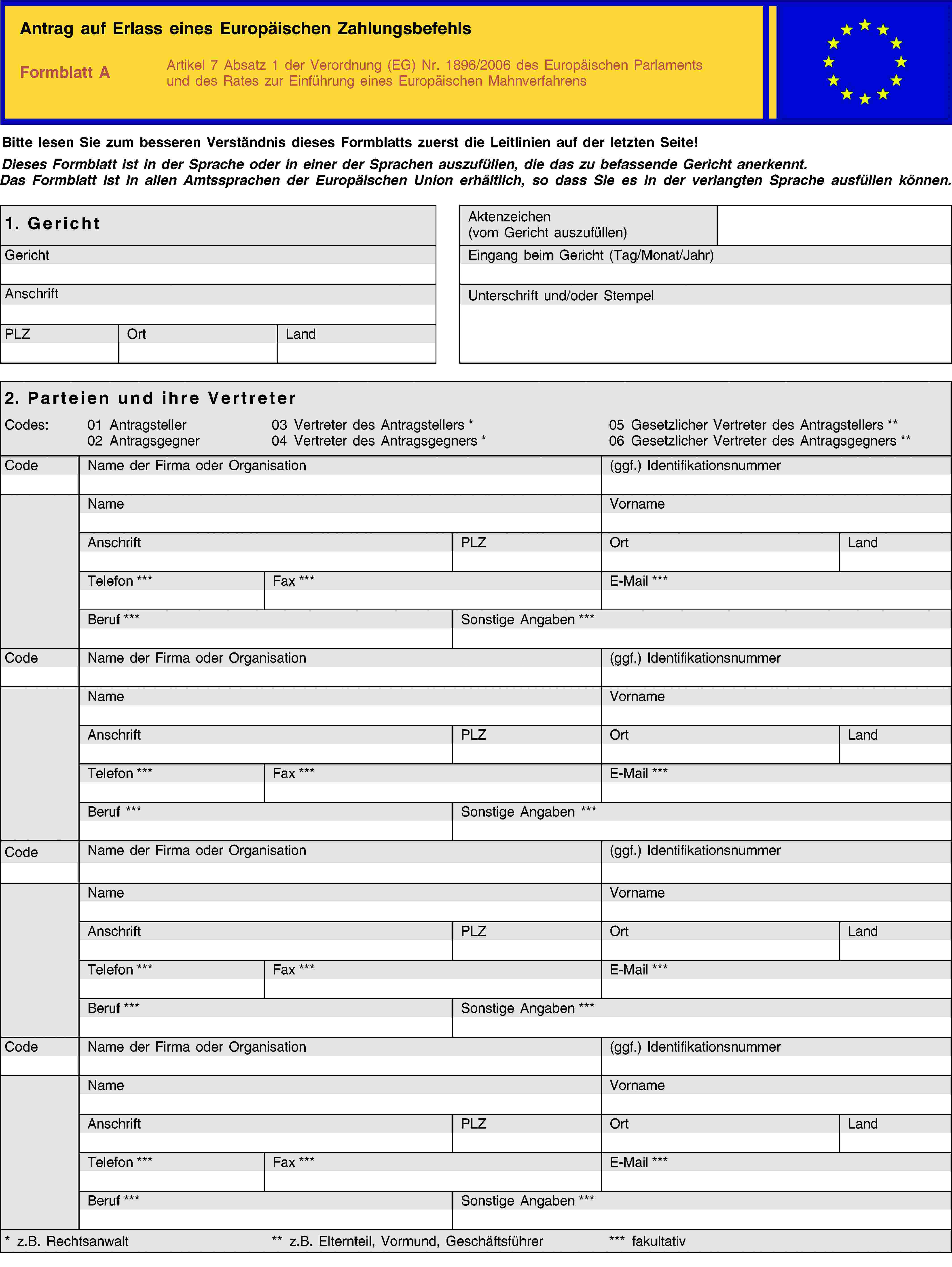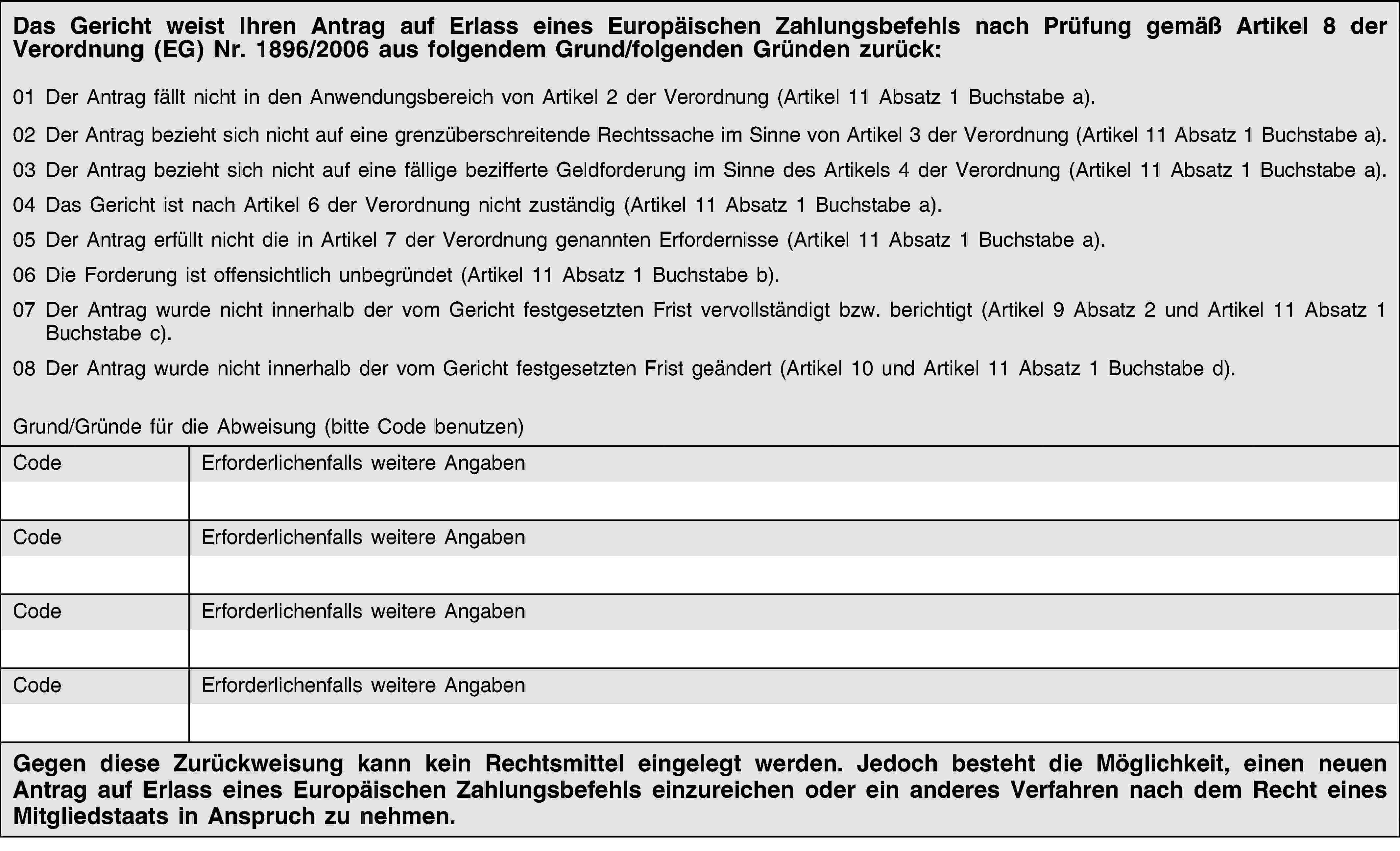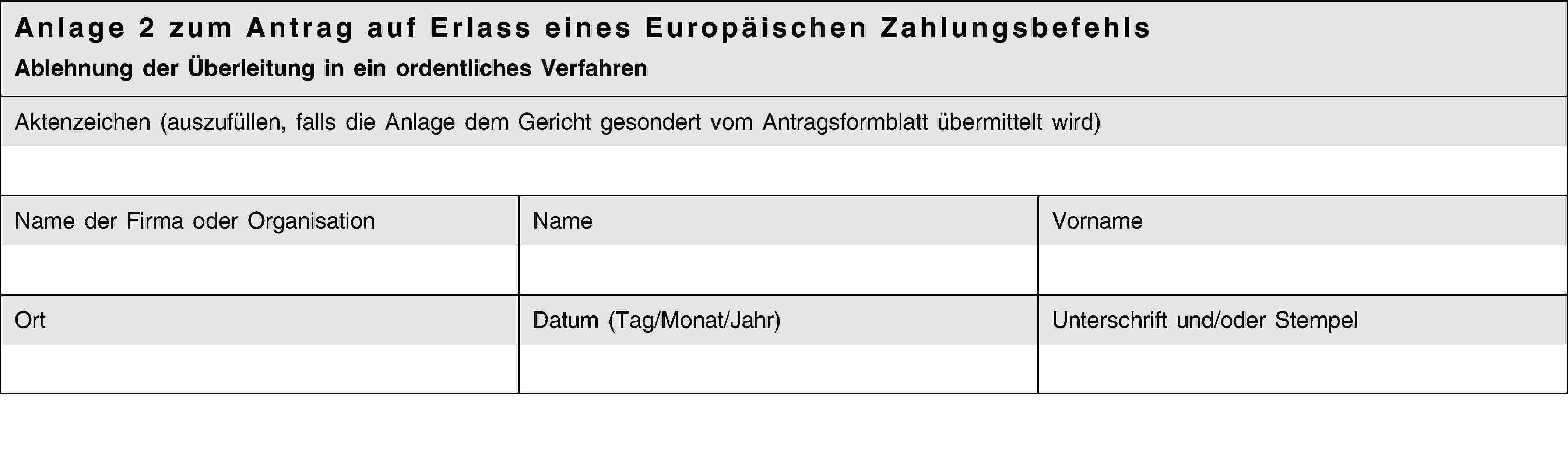 Der Antragsgegner kann seinen Einspruch unter Verwendung des in dieser Verordnung enthaltenen Formblatts einreichen. Die Gerichte sollten allerdings auch einen in anderer Form eingereichten schriftlichen Einspruch berücksichtigen, sofern dieser klar erklärt ist. |