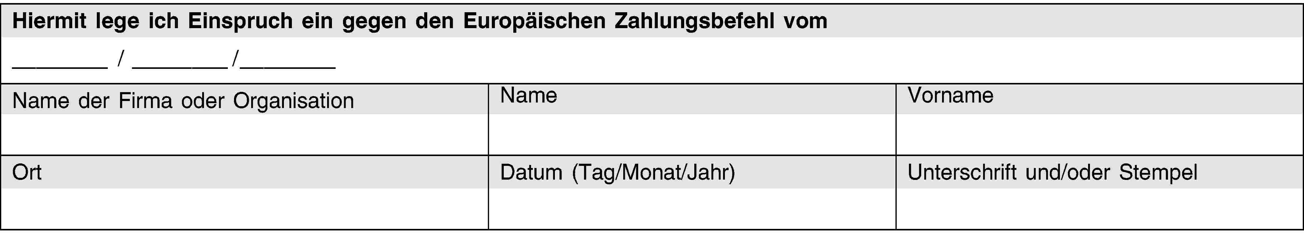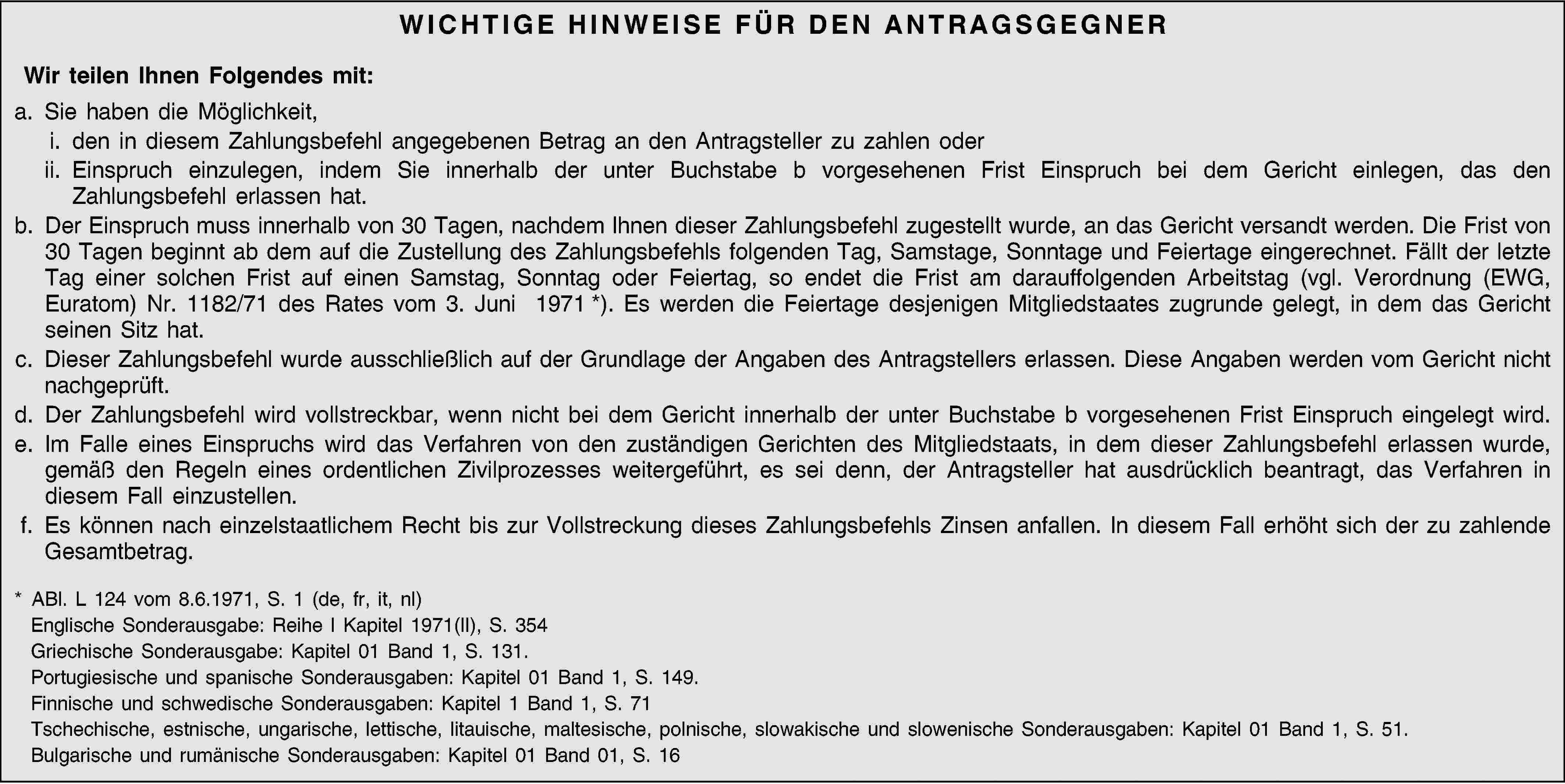 Einspruch gegen den Europäischen Zahlungsbefehl