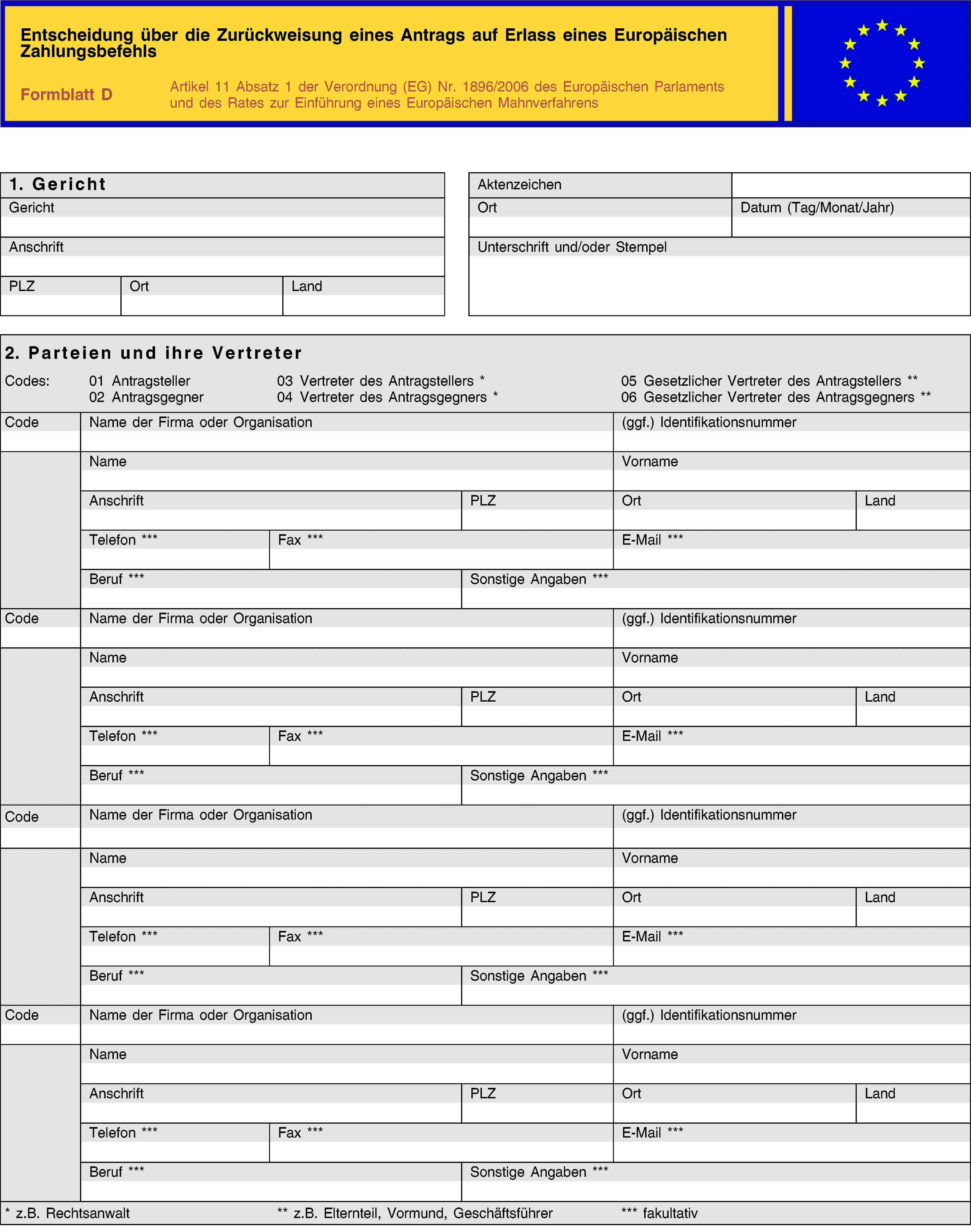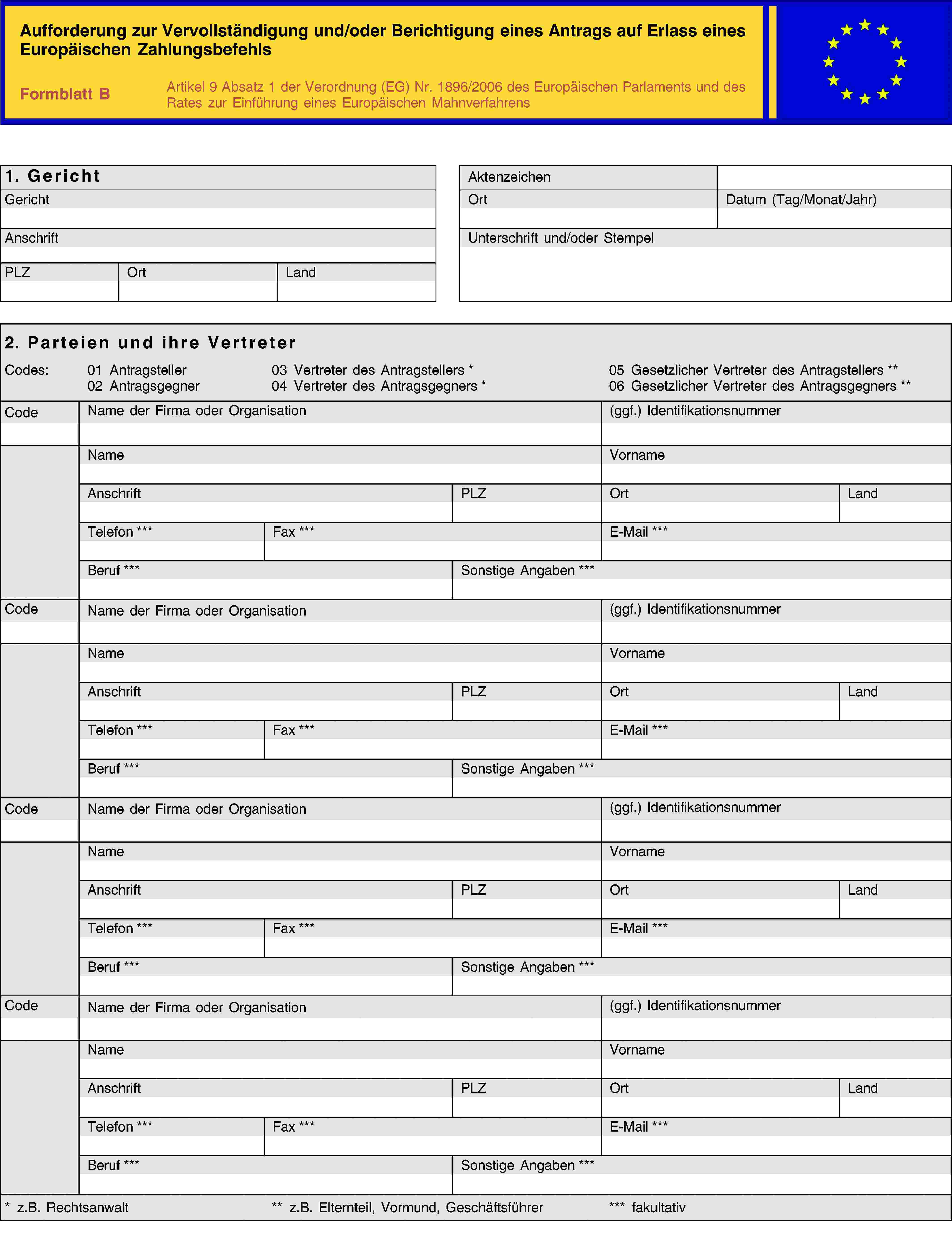 Der Schriftverkehr zwischen dem Gericht und den Parteien sollte soweit wie möglich mit Hilfe von Formblättern abgewickelt werden, um die Abwicklung der Verfahren zu erleichtern und eine automatisierte Verarbeitung der Daten zu ermöglichen. |