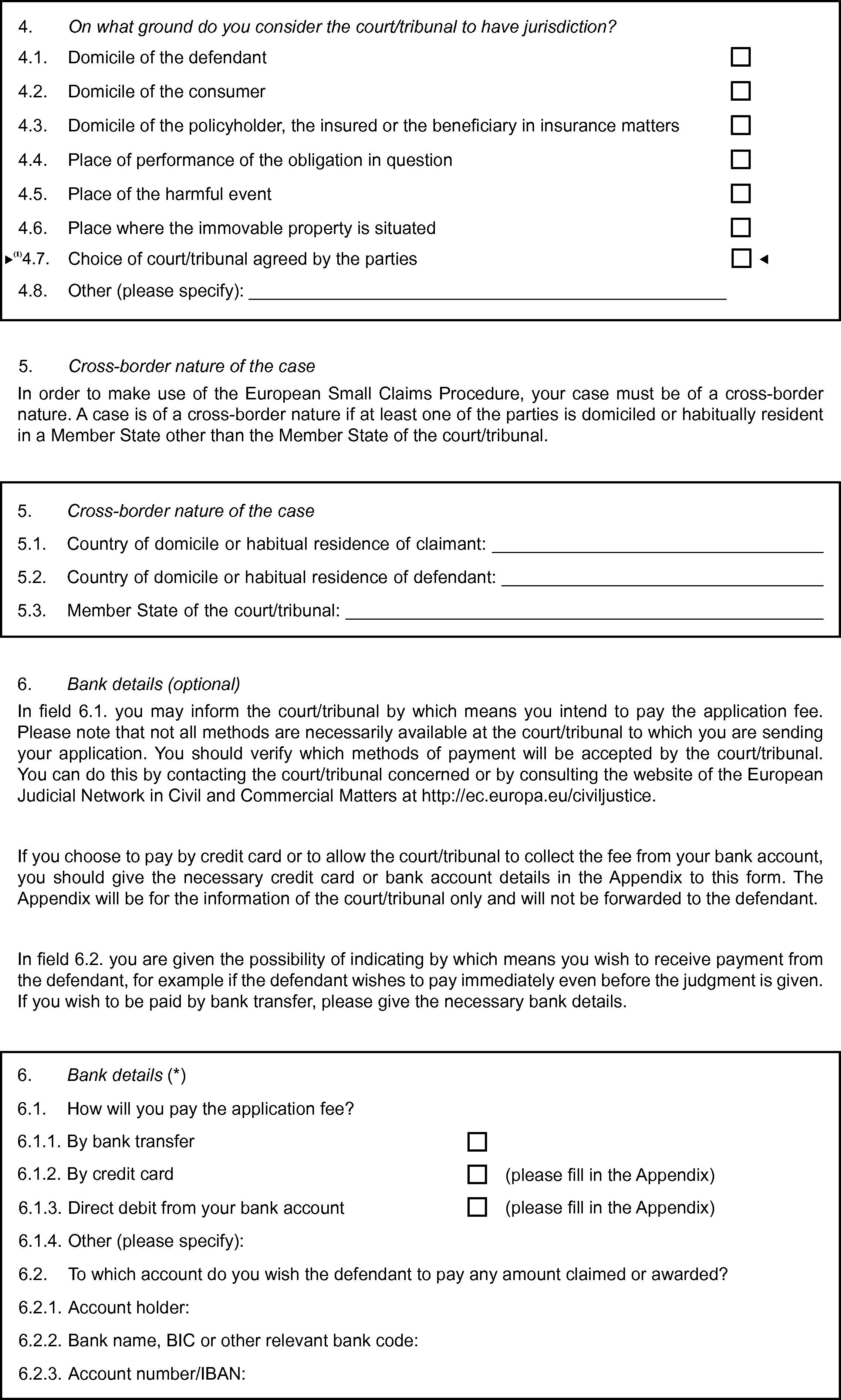 1. The claimant shall commence the European Small Claims Procedure by filling in standard claim Form A, as set out in Annex I, and lodging it with the court or tribunal with jurisdiction directly, by post or by any other means of communication, such as fax or e-mail, acceptable to the Member State in which the procedure is commenced. The claim form shall include a description of evidence supporting the claim and be accompanied, where appropriate, by any relevant supporting documents.
