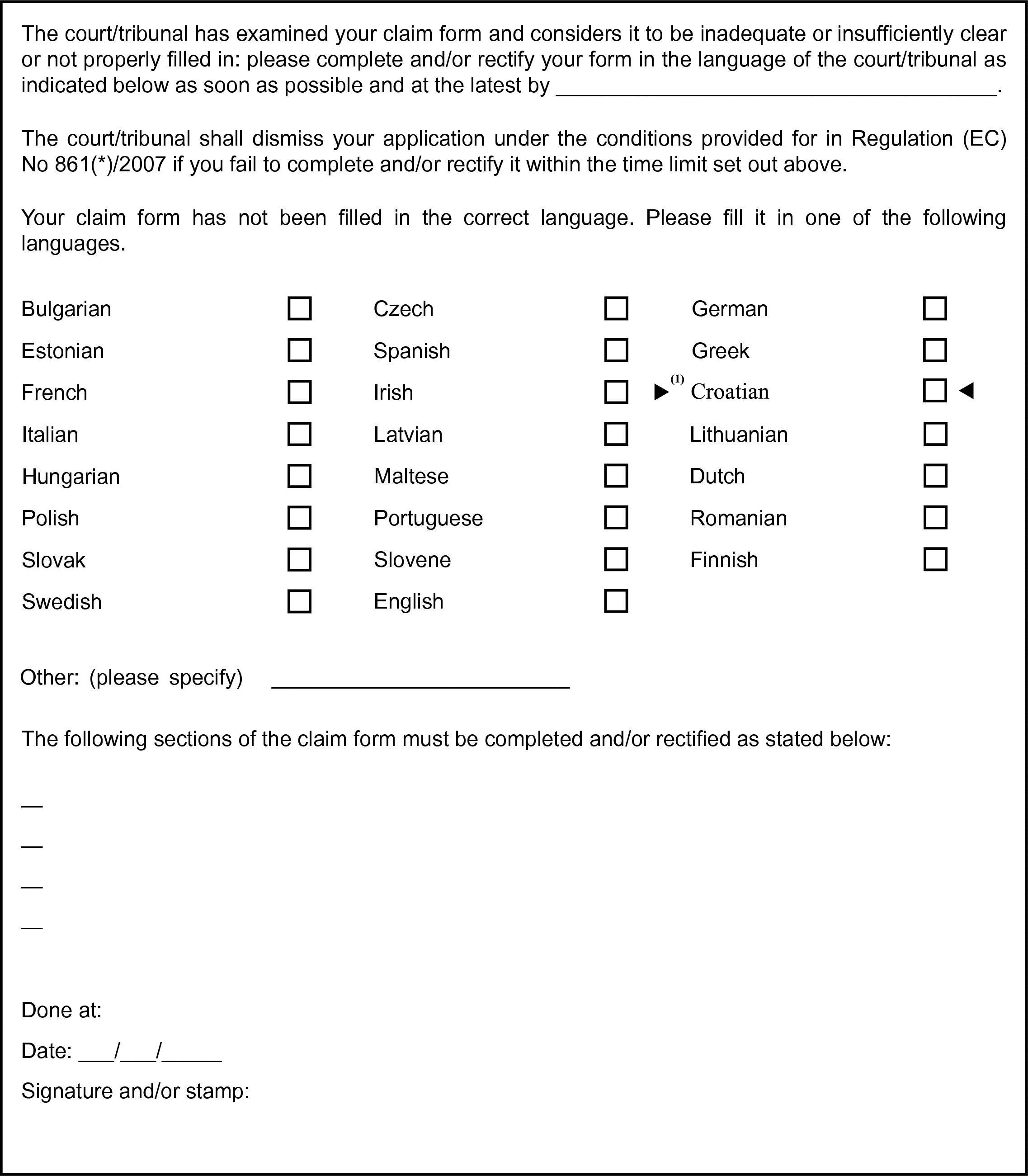 4. Where the court or tribunal considers the information provided by the claimant to be inadequate or insufficiently clear or if the claim form is not filled in properly, it shall, unless the claim appears to be clearly unfounded or the application inadmissible, give the claimant the opportunity to complete or rectify the claim form or to supply supplementary information or documents or to withdraw the claim, within such period as it specifies. The court or tribunal shall use standard Form B, as set out in Annex II, for this purpose.