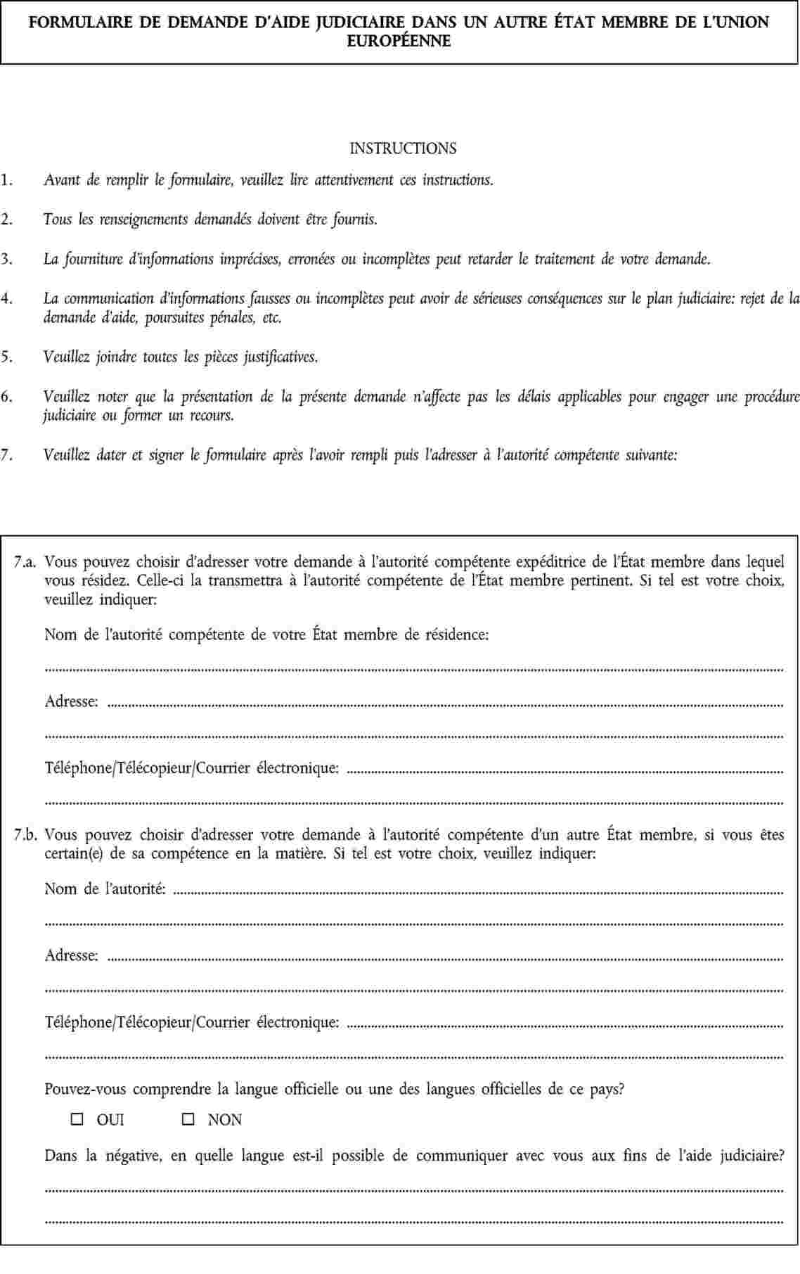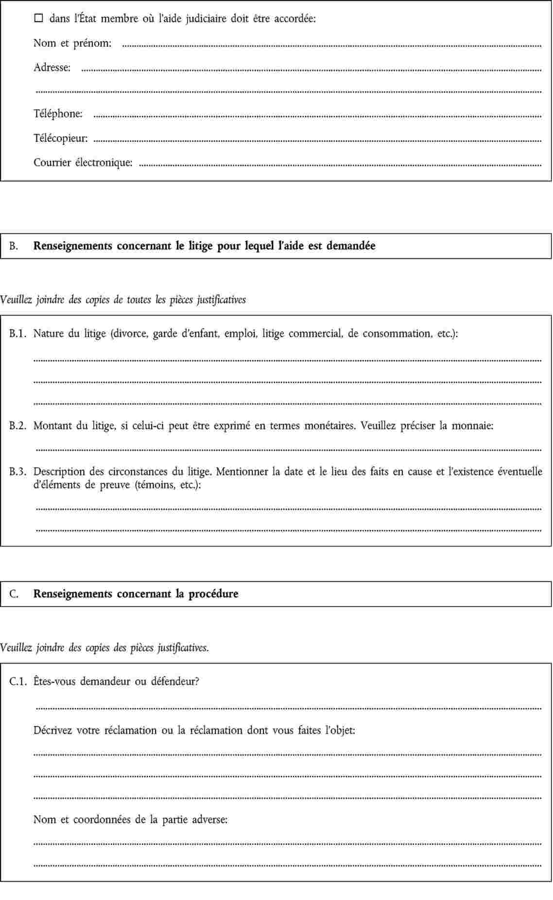 Le formulaire standard pour la présentation des demandes d’aide judiciaire prévu par la directive 2003/8/CE est défini à l’annexe.